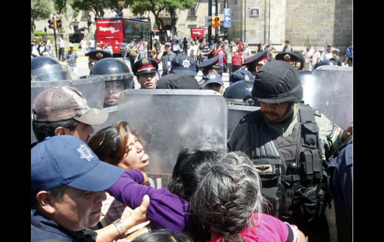 Jalisco | Hay seis personas detenidas y tres heridas; reabren la circulación Policía repliega a artesanos de avenida Alcalde Hay seis personas detenidas y tres heridas; reabren la circulación Por: EL INFORMADOR 25 de septiembre de 2013 - 15:48 hs Policías de Guadalajara retiran a los artesanos de avenida 16 de septiembre e Hidalgo. / GUADALAJARA, JALISCO (25/SEP/2013).- Al filo de las 14:00 horas salieron policías detrás del Palacio Municipal de Guadalajara, se dirigían hacia un grupo de alrededor de 30 artesanos indígenas que bloqueaban Avenida 16 de septiembre e Hidalgo por la detención, supuestamente violenta, de dos vendedores. "Tenemos orden de replegar", se escuchó de uno de los uniformados y sin detenerse comenzaron a empujar a los artesanos, los recorrieron hasta un rincón de la Plaza Guadalajara para reabrir la circulación. El saldo de los hechos fue de seis detenidos y tres heridos, todos miembros de los artesanos a excepción de un ciclista. El caos dominó por cinco minutos, después de cerca de una hora que duró el bloqueo de los comerciantes, a quienes por la mañana se les pidió que se retiraran del andador Pedro Loza ya que está prohibido vender en esa zona. Con gritos hacia el alcalde y consignas de ¡Sal Ramiro (Hernández)! pedían diálogo. Monserrat Martí, una de las representantes de los indígenas, fue detenida y llevada a una patrulla. Posteriormente, Sonia Ferrara, otra de la guías de los comerciantes, fue cargada en medio de una persecución de vendedores y policías que terminó en la puerta trasera de la presidencia donde fue sacada en una camioneta. Cerca de las 16:00 horas, los indígenas continuaron con su protesta a la voz de ¡Ramiro represor! Y ¡Juicio político para Ramiro! El grupo llegó al Congreso de Jalisco, donde fueron recibidos por el diputado Clemente Castañeda de Movimiento Ciudadano. EL INFORMADOR / SAÚL PRIETO Temas Manifestaciones en Jalisco Ayuntamiento de Guadalajara Municipios Policía de Guadalajara Lee También Continúa bandera roja en todas las playas de Puerto Vallarta Con "Raymond" cerca, Guadalajara espera lluvias a esta hora del viernes Detienen a una mujer en Zapopan tras presuntamente robar un Costco "Raymond" AMAGA a Jalisco; lo que necesitas saber Recibe las últimas noticias en tu e-mail Todo lo que necesitas saber para comenzar tu día Registrarse implica aceptar los Términos y Condiciones