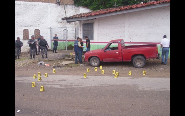 Jalisco | Un grupo de criminales disparó contra los elementos y se dieron a la fuga Policías de Puerto Vallarta mueren acribillados Un grupo de criminales disparó contra los elementos fuera del Centro Preventivo de Retención para Menores de Edad Por: EL INFORMADOR 2 de septiembre de 2012 - 11:02 hs En el lugar de la agresión quedaron más de 50 cascajos de bala al parecer corresponden a ''cuerno de chivo''. / PUERTO VALLARTA, JALISCO (02/SEP/2012).- Mueren acribillados con disparos de armas largas a manos de un grupo de delincuentes, dos policías municipales en Puerto Vallarta. Los hechos ocurrieron en el exterior del Centro Preventivo de Retención para Menores de Edad, ubicado en la parte alta de la Delegación de El Pitillal. En el lugar quedaron esparcidos más de 50 cascajos percutidos de calibre 7.62 correspondientes a los llamados ''cuernos de chivo''. El director de la Policía Municipal porteña, Raymundo Leonel Villaseñor, informó que los policías abatidos respondían a los nombres de Ramiro Grande Navarro y Francisco León Velázquez con 14 y 20 años de antigüedad en la corporación , respectivamente. Los cuerpos de los dos policías uniformados quedaron entre un vehículo estacionado y el muro del centro de retención de menores, conocido en el balneario como UNIDIS. Junto a los cuerpos de los gendarmes quedaron sus pistolas de cargo que no alcanzaron a utilizar para repeler la agresión. El doble homicidio se registró después del cambio de turno. Los homicidas huyeron al parecer en dos vehículos con rumbo desconocido. Peritos del Instituto Jalisciense de Ciencias Forenses se presentaron en el lugar de los hechos para levantar indicios y trasladar los cuerpos a la morgue vallartense para la práctica de la necropsia de ley. Elementos de la Armada, Policía Estatal y Policía Federal Preventiva también llegaron al lugar para apoyar a las autoridades locales. Respecto a los victimarios se informó por parte de testigos que al parecer viajaban en dos automotores; un Pick Up y una Van y que huyeron a toda velocidad. Los múltiples disparos que escucharon los vecinos y transeúntes provocaron miedo que se reflejó en la negativa a dar información a los elementos de la Policía Investigadora. Temas Seguridad Muertes Puerto Vallarta Ejecutados en Jalisco Lee También Temporal de lluvias deja 20 muertos en Jalisco Abre centro de acopio del DIF para afectados por lluvias en Puerto Vallarta Hay más de mil viviendas afectadas por lluvias en Puerto Vallarta: Protección Civil ¿Cómo estará Guadalajara por la tarde; habrá lluvia? Recibe las últimas noticias en tu e-mail Todo lo que necesitas saber para comenzar tu día Registrarse implica aceptar los Términos y Condiciones