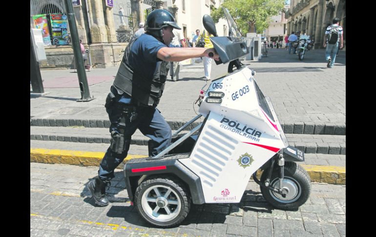 Jalisco | Refuerzan patrullaje en el Centro Policías estrenan triciclos motorizados La Policía de Guadalajara dotó a sus elementos de 25 unidades móviles conocidas como triciclos motorizados Por: EL INFORMADOR 25 de abril de 2012 - 03:22 hs Pueden alcanzar una velocidad de hasta 50 kilómetros por hora. / GUADALAJARA, JALISCO (25/ABR/2012).- La Policía de Guadalajara dotó a sus elementos de 25 unidades móviles conocidas como triciclos motorizados (en la imagen) para facilitar las labores de patrullaje en el Centro Histórico y la zona de Avenida Chapultepec. Los nuevos vehículos miden 80 centímetros de ancho por 1.15 metros de largo, tienen la capacidad de subir banquetas y superar obstáculos con una altura máxima de 15 centímetros. Pueden alcanzar una velocidad de hasta 50 kilómetros por hora, y por sus dimensiones no sólo es apto para recorrer andadores y corredores, también puede ingresar por puertas e, incluso, elevadores. Temas Seguridad Centro Histórico Policía de Guadalajara Lee También Atención, MiBici cerrará 12 estaciones por la Romería 2025 Detienen a asesino de joven en partido de futbol Así estará Guadalajara por la tarde; ¿lloverá? Este es el mejor restaurante vegano de Guadalajara, según la IA Recibe las últimas noticias en tu e-mail Todo lo que necesitas saber para comenzar tu día Registrarse implica aceptar los Términos y Condiciones