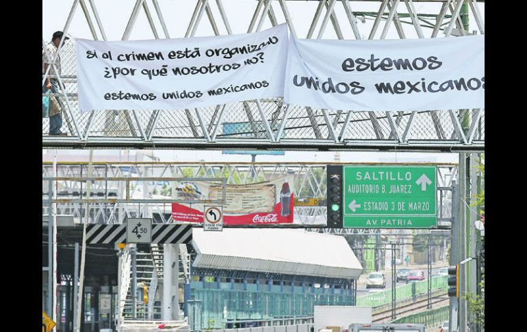 Jalisco | Los anuncios fueron colocados en la estación Atemajac del Tren Ligero Policías se movilizan por mantas con mensajes... de paz Los anuncios colgados en la estación del Tren Ligero provocaron que autoridades policiales se movilizara, pero dieron cuenta pronto de que no había nada de qué preocuparse Por: EL INFORMADOR 1 de junio de 2012 - 03:21 hs Las mantas que han aparecido en el país con mensajes del crimen organizado merecieron ayer una réplica de tapatíos. / GUADALAJARA, JALISCO (01/JUN/2012).- Las mantas que han aparecido en el país con mensajes del crimen organizado merecieron ayer una réplica de tapatíos que decidieron colgar sus propios mensajes en el puente peatonal de la estación Atemajac del Tren Ligero y que de hecho, en principio, fueron reportadas como algo que mereció unos pocos minutos de movilización policial. Tanto los policías como los curiosos que pudieron ver los mensajes se dieron cuenta pronto de que no había nada de qué preocuparse: las mantas del Tren Ligero contenían, en realidad, mensajes de paz. Temas Municipios Policía de Guadalajara Lee También Clima en Guadalajara hoy: el pronóstico para el viernes 10 de octubre de 2025 Vecinos colapsan Periférico Sur en protesta por incumplimiento de estación de Mi Macro en Tlaquepaque Cine al aire libre en Guadalajara: Cartelera del 9 al 12 de octubre ¿Cómo llegar en camión o tren a la Romería 2025? Recibe las últimas noticias en tu e-mail Todo lo que necesitas saber para comenzar tu día Registrarse implica aceptar los Términos y Condiciones
