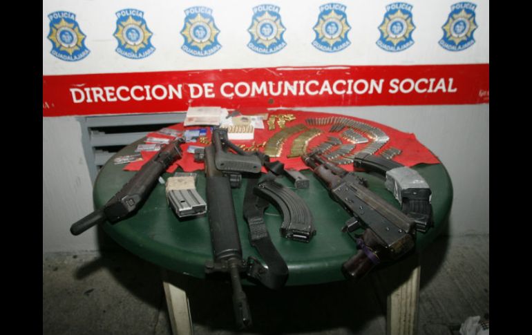 Jalisco | Los sujetos portaban dos fusiles AK-47 y un fusil calibre .223 Policías tapatíos arrestan a cuatro hombres armados Uno de los detenidos cuenta con tres órdenes de aprehensión por delitos del fuero federal Por: EL INFORMADOR 10 de septiembre de 2011 - 01:22 hs Las autoridades tapatías decomisaron arsenal de alto calibre. O. RUVALCABA / GUADALAJARA, JALISCO (09/SEP/2011).- Cuatro hombres fuertemente armados fueron detenidos por elementos de la Policía de Guadalajara, tras una persecución iniciada en calles de la Colonia Villas de San Juan durante la noche del viernes; uno de ellos cuenta con tres órdenes de aprehensión por delitos federales. En el patio de maniobras del cuartel de la Calzada Independencia de la Policía tapatía fueron presentados los individuos que se identificaron como José Alberto Moreno, de 22 años de edad, Santiago Daniel Cordero Vargas, de 27 años; Juan Carlos de la Cruz Velazco de 32, y Jorge Oswaldo Briseño Flores, de 29, quien además cuenta con tres órdenes de aprehensión por delitos del fuero federal en el Estado de Nayarit. De acuerdo con lo explicado por lo municipales, los hombres viajaban alrededor de las 22:30 horas de este viernes, en una camioneta BMW X6 blanca, con placas JHL-8860 y una Ford Windstar blanca, con matrícula JJF-5773, por el cruce de las Avenidas Circunvalación División del Norte y Normalistas, donde les marcaron el alto debido a que viajaban en conjunto y actitud sospechosa. Sin embargo, ellos hicieron caso omiso y trataron de escapar. “Se le marca el alto en los cruce de Circulación y Normalistas, por lo cual se dan a la huida, y se inicia una persecución por varias calles y son topados por varias unidades de la Policía de Guadalajara, y éstos trataron de accionar sus armas, pero al ver las unidades, bajan sus armas y se rinden” dijo un policía municipal que participó en la detención de los individuos. Fue hasta el cruce de las calles de Fernando Lizardi y Diego Rivera, ya en la colonia Colinas de La Normal, donde se registró la detención. Al ser sometidos les aseguraran dos fusiles AK-47, mejor conocidos como “cuerno de chivo”, y un fusil calibre .223. En ese momento los detenidos fueron llevados al cuartel citado, donde al poner las armas de fuego en la mesa, contabilizaron 73 balas del calibre 9 milímetros; 32 del .38 súper; 98 del calibre 7.62x39, utilizado para el AK-47, y 59 del .223 y ocho playeras de diferentes colores, que a decir de la corporación policíaca las utilizan después de cometer un crimen para despistar a las autoridades. Los detenidos fueron llevados ante una agente del Ministerio Público del fuero común, donde serán investigados si tienen algún delito de su competencia, y sí no serán puestos a disposición de la Procuraduría General de la República. Sin embargo, se presume que los detenidos se dirigían a realizar algún delito. EL INFORMADOR / OMAR RUVALCABA Temas Seguridad Detenidos en Jalisco Lee También Morena Jalisco conmemora 72 años del voto femenino y llama a más paridad Jalisco y 'Te Protejo México' firman acuerdo para fortalecer la ciberseguridad infantil y de adolescentes Detienen a "La Jefa" en CDMX; presunta líder de una célula delictiva Aseguran presunto narcolaboratorio en colonia Centro de Teocaltiche Recibe las últimas noticias en tu e-mail Todo lo que necesitas saber para comenzar tu día Registrarse implica aceptar los Términos y Condiciones