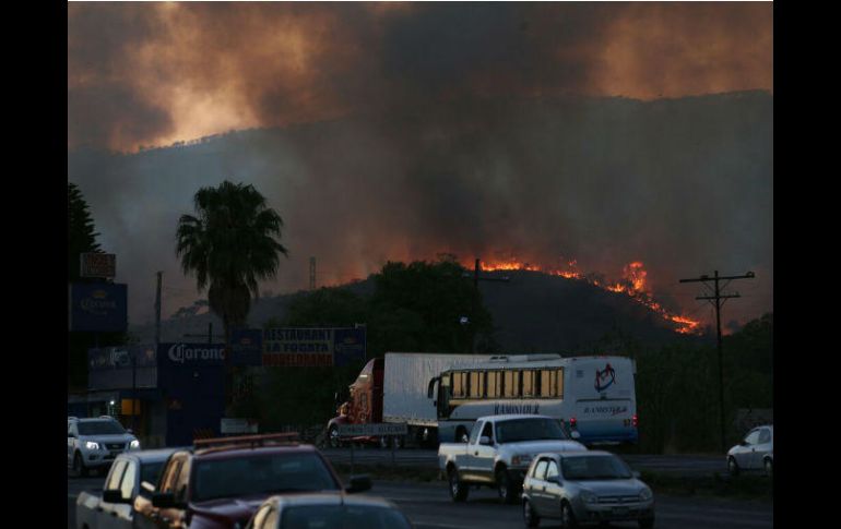 GUADALAJARA, JALISCO (03/ABR/2017).- Un incendio forestal consumió ayer más de 300 hectáreas del cerro del Tepopote, en el municipio de Zapopan. El fuego, cuyo origen aún se desconoce, provocó la movilización de poco más de 200 elementos de distintas corporaciones municipales, estatales y federales.La columna de humo era visible desde distintos puntos de la Zona Metropolitana como Zapopan, Guadalajara y Tlaquepaque.Por el humo generado, la Secretaría de Medio Ambiente y Desarrollo Territorial (Semadet) declaró emergencia atmosférica en el municipio de Zapopan y la Secretaría de Educación Jalisco (SEJ) suspendió clases en las localidades de La Venta del Astillero y La Primavera.Sergio Ramírez, coordinador de Bomberos y Protección Civil del Ayuntamiento de Zapopan, indicó que no se evacuó a ninguna persona. Explicó que desde la tarde el incendio se combatía en dos frentes: a un costado del Cerro el Tepopote, en el Club Diana, y otro más en el Club Cinegético, en La Venta del Astillero.“Son las áreas donde hay mayor riesgo de afectación por la infraestructura y aspectos ambientales”.Por su parte, Magdalena Ruiz Mejía, titular de la Semadet, recomendó a la población no hacer ejercicio al aire libre, cerrar puertas y ventanas, evitar salir a la calle, utilizar cubrebocas y acudir a un puesto de socorros en caso de presentar malestares.Francisco Cortez, jefe de Protección Forestal de la Comisión Nacional Forestal (Conafor) en Jalisco, hizo un llamado a la población de no prender fuego cuando se visitan áreas verdes.La mayoría del espacio consumido era hojarasca y pastizales.En el combate al fuego participaron tres helicópteros de la Fiscalía. También colaboran elementos de Bomberos de Zapopan, Guadalajara, del Estado y brigadistas de la Semadet y Conafor, así como de la Secretaría de la Defensa Nacional (Sedena) y el organismo público descentralizado del Bosque de la Primavera.Hasta anoche, el fuego no había sido plenamente controlado.
