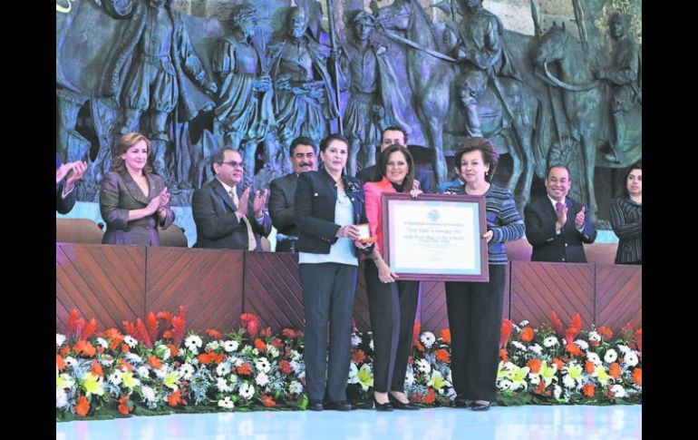 Jalisco | Actos oficiales enmarcan festejos por el 471 aniversario de la ciudad Premian a la asociación Adopte una Obra de Arte Los responsables de la restauración del Templo de Santa Mónica fueron galardonados con la Medalla Ciudad de Guadalajara Por: EL INFORMADOR 15 de febrero de 2013 - 02:52 hs Reconocimiento. La asociación Adopte una Obra de Arte fue galardonada con la Medalla Ciudad de Guadalajara. EL INFORMADOR / GUADALAJARA, JALISCO (15/FEB/2013).- La conmemoración del 471 aniversario de la fundación de la ciudad de Guadalajara cerró con un reconocimiento de parte del Ayuntamiento tapatío a la labor del Consejo Nacional Adopte una Obra de Arte Consejo Estatal Jalisco, la asociación civil que está a punto de concluir con la restauración del Templo de Santa Mónica tras seis años de labores. La Medalla Ciudad de Guadalajara fue entregada por el presidente municipal, Ramiro Hernández García, a María Irma Iturbide Robles, presidenta de esta asociación que ha restaurado 53 cuadros coloniales del Museo Regional de Guadalajara; los dos murales de José Clemente Orozco del Palacio de Gobierno; tres cuadros del periodo virreinal en el Templo de Aránzazu; la Antigua Estación del Ferrocarril en Chapala, la Parroquia de Tequila y creadora de la Escuela de Conservación y Restauración de Occidente. Lo que hace esta asociación es gestionar recursos públicos y privados para canalizarlos al rescate y cuidado de edificios patrimoniales y obras de arte, partiendo del derecho de la sociedad a disfrutar la herencia cultural de sus predecesores, y de su obligación por conservarla para las generaciones futuras. En pocos meses, dijo su presidenta, el Templo de Santa Mónica que “ostenta por mucho la portada más hermosa de la ciudad”, y “joya del periodo Barroco”, habrá recobrado por completo su esplendor. Como parte de los festejos, el día también incluyó la interpretación de “Las Mañanitas” por el Mariachi Ciudad de Guadalajara, desde la plaza del mismo nombre, donde se repartió picón y chocolate a los asistentes. El alcalde llamó a “engrandecer” a la ciudad “manteniendo una buena convivencia que nos permita no solamente ser buenos ciudadanos, sino también tener una gran familia. Y de la puerta para afuera, manteniendo limpia nuestras banquetas, bien cuidadas las fachadas y manteniendo la convivencia y la armonía con nuestros vecinos y con quienes transitamos, trabajamos y vivimos en esta gran ciudad”. FRASE"Es muy oportuno que hagamos una reflexión quienes queremos a Guadalajara, para que lo demostremos de manera permanente cuidándola, engrandeciéndola y siempre proyectando la mejor imagen de nosotros mismos y de la ciudad "Ramiro Hernández, alcalde de Guadalajara. Temas Ayuntamiento de Guadalajara Aniversario de Guadalajara Municipios Lee También Clima en Guadalajara hoy: el pronóstico para el sábado 11 de octubre de 2025 Proyectan expansión de Placencia Muebles Estos son todos los cambios que tendrá el transporte público por el paso de la Romería ¿LLUVIA en GDL por la noche?, pronóstico del clima para hoy, 10 de octubre Recibe las últimas noticias en tu e-mail Todo lo que necesitas saber para comenzar tu día Registrarse implica aceptar los Términos y Condiciones