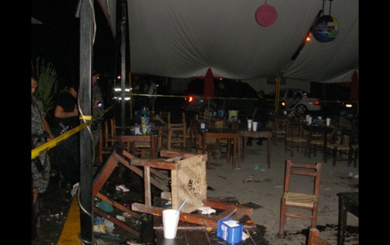 Jalisco | Aunque avanzan las investigaciones, la PGR no ha identificado al líder del grupo Presumen autoría de cartel de la droga en explosión en Puerto Vallarta Los cinco sujetos detenidos del caso serían parte de una célula de distribuidores de enervantes al servicio de grupo delictivo de Sinaloa Por: SUN 27 de agosto de 2010 - 08:19 hs Paramédicos atienden a los heridos tras la explosión de un artefacto lanzado al interior de un antro en Puerto Vallarta. ESPECIAL / Granadazo en Puerto Vallarta ''fue accidente''Cinco hombres bajo investigación por detonación de granada GUADALAJARA, JALISCO (27/AGO/2010).- Los cinco sujetos detenidos y que se encuentran graves por la explosión de una granada de fragmentación en un bar de Puerto Vallarta, ocurrida ayer jueves, están relacionados con la delincuencia organizada, según las primeras indagaciones. Autoridades de la Procuraduría General de la República ( PGR) y de la Procuraduría General de Justicia del Estado de Jalisco (PGJEJ), reportaron que las personas a las que accidentalmente se les detonó el artefacto explosivo en el interior del negocio denominado "Pink Cheladas" en el barrio de El Pitillal, serían parte de una célula de distribuidores de drogas que opera al servicio del cartel de Sinaloa. Los detenidos con heridas graves fueron identificados como Edgar Alejandro Araiza Vargas de 23 años, Francisco Daniel Martínez Joya de 20, Juan Luis Vargas Guzmán de 35 años, Orlando o Arnoldo Langarica García de 30 años y Jaime Alonso Mora Gutiérrez, también de 30. Los dos últimos con amputación en piernas. No obstante, debido que hasta la noche de ayer jueves no se encontraban en condiciones de declarar ante un Agente del Ministerio Público, aún no es identificado el líder del grupo. El hospital en el que se recuperan continúa bajo resguardo de elementos del Ejército. Entre tanto, de los otros 11 lesionados entre clientes y empleados del negocio, al menos cinco ya fueron dados de alta. Temas Seguridad PGR Puerto Vallarta Cártel de Sinaloa Lee También Omar 'N' es vinculado a proceso por presunto abuso sexual infantil agravado Se hunde embarcación Marigalante en Puerto Vallarta (VIDEO) Sinaloa pide extremar precauciones por Tormenta Tropical Raymond Detienen a hombre señalado por abusar sexualmente de su hija Recibe las últimas noticias en tu e-mail Todo lo que necesitas saber para comenzar tu día Registrarse implica aceptar los Términos y Condiciones