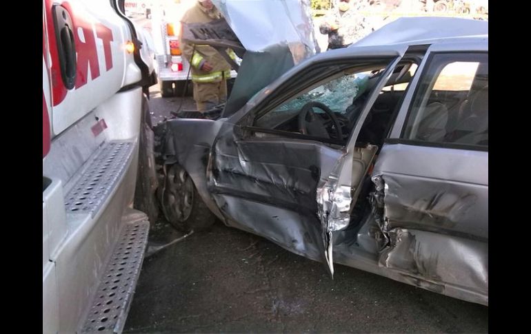 Jalisco | Hasta el momento, no se registran decesos y sólo una persona resulta herida Protección Civil reporta accidente en carretera a Chapala y Periférico Hasta el momento, no se registran decesos y sólo una persona resulta herida Por: NTX 13 de agosto de 2015 - 10:11 hs Dentro del vehículo compacto por el choque con el camión se encontraba una mujer atrapada, prensada en el automotor. ESPECIAL / UEPCBJ GUADALAJARA, JALISCO (13/AGO/2015).- Un choque entre un camión y un vehículo particular en el cruce de Periférico y la carretera a Chapala dejó una persona lesionada, prensada en el automotor, además de que complicó la circulación en dicho punto, según información de la Unidad Estatal de Protección Civil y Bomberos (UEPCB). Fue alrededor de las nueve de la mañana que se reportó el hecho, tras lo que unidades de rescate se trasladaron a punto. Se trataba de una colisión entre un tráiler de la empresa Truck y un Nissan Sentra modelo 2003. También participó una unidad del transporte público de la ruta 176, que recibió un choque muy leve; sin embargo, no llevaba pasaje y el chofer quedó ileso. Las autoridades encontraron dentro del vehículo compacto a una mujer atrapada, tras lo que se procedió a las labores de rescate de la misma, identificada como Jadith Martínez Cortez. Tras sacarla del auto se atendió en el mismo punto pues sus lesiones no ameritaron traslado. Temas Seguridad Accidentes Municipios Protección Civil Jalisco Lee También Detienen a presunto homicida en Lomas de Oblatos Puerto Vallarta es reconocida como la mejor ciudad pequeña de Latinoamérica Suspenden clases en estos 9 municipios de Jalisco ante el paso de tormenta tropical 'Raymond' Clausuran centro de rehabilitación en Tonalá por posibles delitos Recibe las últimas noticias en tu e-mail Todo lo que necesitas saber para comenzar tu día Registrarse implica aceptar los Términos y Condiciones