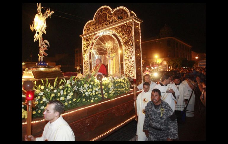 Jalisco | El Cardenal encabeza procesión Recorren católicos Centro tapatío en festividad del Corpus Christi En 2004, Guadalajara albergó el Congreso Eucarístico Internacional, evento al que acudieron clérigos de todo el planeta Por: EL INFORMADOR 5 de junio de 2010 - 03:51 hs El acto religioso obligó a varios cortes en el tránsito vehicular. EL INFORMADOR A. GARCÍA / GUADALAJARA, JALISCO (05/JUN72010).- El cardenal Juan Sandoval encabezó anoche la procesión del Corpus Christi, una de las principales fiestas de la Iglesia Católica. Como se ha hecho desde el año 2004, cuando se retomó la tradición de una procesión por esta festividad, ayer casi cinco mil feligreses participaron primero en una misa en la explanada del Templo Expiatorio y marcharon después, detrás del carro alegórico con el arzobispo y la hostia consagrada, por las avenidas Enrique Díaz de León e Hidalgo, hasta llegar a la Plaza de la Liberación, donde culminó el ritual con una oración. En 2004, Guadalajara albergó el Congreso Eucarístico Internacional, evento al que acudieron clérigos de todo el planeta, y uno de los actos más notorios entonces fue una procesión como la de ayer. En su mensaje, el cardenal Sandoval instó a los fieles a acudir a misa, pues apenas 30% de los católicos participan en este ritual los domingos. El acto religioso obligó a varios cortes en el tránsito vehicular, que se normalizó hasta entrada la noche. Temas Iglesia Católica en Jalisco Municipios Juan Sandoval Íñiguez Lee También Detienen a presunto homicida en Lomas de Oblatos Puerto Vallarta es reconocida como la mejor ciudad pequeña de Latinoamérica Suspenden clases en estos 9 municipios de Jalisco ante el paso de tormenta tropical 'Raymond' Esta es la verdadera identidad del "Juan Gabriel" captado en París Recibe las últimas noticias en tu e-mail Todo lo que necesitas saber para comenzar tu día Registrarse implica aceptar los Términos y Condiciones