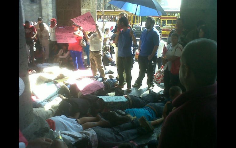 Jalisco | El grupo que antes cerró calles ahora se postra a las puertas del Palacio Municipal Regresan manifestaciones de ambulantes al Centro tapatío El mismo grupo que antes cerró calles ahora se postra a las puertas del Palacio Municipal Por: EL INFORMADOR 15 de noviembre de 2012 - 12:01 hs Los quejosos están postrados al piso en el ingreso del Palacio Municipal. / GUADALAJARA, JALISCO (15/NOV/2012).- Regresaron las manifestaciones del Frente de Resistencia de Comerciantes del Estado a las puertas del Palacio Municipal de Guadalajara, uno de los grupos éste que controla el ambulantaje en el Centro Histórico, y que protesta a los operativos que se están realizando para recuperar el espacio público que se encuentra invadido por estas actividades. Integrantes del grupo que lidera Salvador Cabrera Vera están postrados al piso en el ingreso del Palacio Municipal, de rodillas y con la cabeza al suelo. Se había abierto una oportunidad de diálogo con la autoridad municipal pero no se ha llegado a acuerdos aún. A Cabrera Vera se le puede ver con un pasamontañas ahí, dirigiendo la protesta de los suyos. Entre los que yacían en el suelo había indígenas. En las exigencias de este grupo, además de que se les permita vender en la vía pública del Centro Histórico (lo que está prohibido reglamentariamente, no en el resto de la ciudad), está que se les devuelva mercancía confiscada por un valor de 100 mil pesos, esto según las aseveraciones de su líder. La autoridad municipal recurrió a la fuerza pública para retirar a comerciantes de este grupo el sábado 10 de noviembre, cuando se instalaron en la Avenida Chapultepec. La Comisión Estatal de Derechos Humanos Jalisco (CEDHJ), que estuvo presente, documentó que hubo agresiones de parte de la gente de Cabrera Vera hacia el personal municipal, y no al revés. EL INFORMADOR / LUIS HERRERA Temas Manifestaciones en Jalisco Ayuntamiento de Guadalajara Municipios Comercio ambulante Lee También Cartucho Clima en Guadalajara hoy: el pronóstico para el viernes 10 de octubre de 2025 Astros de Jalisco toma ventaja sobre Xalapa en la semifinal de zona Detienen a presunto homicida en Lomas de Oblatos Recibe las últimas noticias en tu e-mail Todo lo que necesitas saber para comenzar tu día Registrarse implica aceptar los Términos y Condiciones