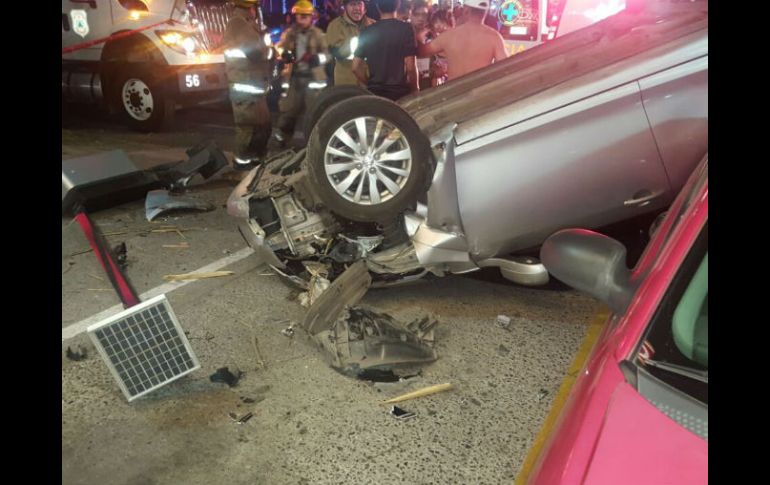 GUADALAJARA, JALISCO (10/DIC/2016).- Un fuerte choque se registró en la colonia Jardines del Valle la noche de este viernes, reportó la corporación de Bomberos de Zapopan.Dos automóviles se impactaron en el cruce de las avenidas Valle de México y Valle de Bravo, en Zapopan.Uno de los vehículos terminó volcado en el lugar del accidente, la conductora de este presentó lesiones de consideración por lo que fue trasladada a servicios médicos para su atención, menciona la corporación.Debido a la gravedad del choque, también resultaron afectados un poste de luz y un teléfono público, dijo la corporación, así como un automóvil que se encontraba estacionado.
