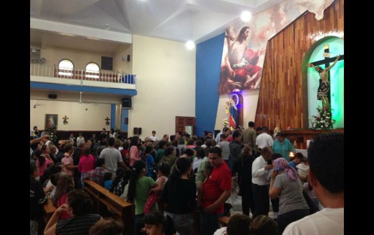 Jalisco | Fieles se congregan en el templo de María Madre de la Iglesia para ver el ''milagro'' Reportan hallazgo de hostia que supuestamente sangra Fieles se congregan en el templo de María Madre de la Iglesia para ver el ''milagro'' Por: EL INFORMADOR 24 de julio de 2013 - 17:57 hs Filas de personas esperan su turno para poder ver de cerca la hostia. Imagen de @ALettelier. Emma Jasso. ESPECIAL / GUADALAJARA, JALISCO (24/JUL/2013).- En las redes sociales comienzan a circular varias imágenes de una hostia que supuestamente sangra, hecho que ha llamado la atención a numerosos fieles que ya se congregan en el templo de María Madre de la Iglesia en la colonia Jardines de la Paz, Guadalajara. En Twitter, la usuaria, Johana Flores Rivera (@johniix) escribió "Sucede algo impactante en un templo cercano a mi casa, la hostia se llena de sangre. Filas de gente listas para verlo." Según otros usuarios, diversos medios de comunicación locales ya se encuentran en el sitio para recoger el testigo de la multitud que se congrega para ver lo que llaman "milagro". Otro usuario, Antonio Lettelier (@ALettelier) escribió en la red social: "Mucha gente en el templo en la colonia jardines de La Paz de Gdl por el hallazgo de una hostia con sangre." En su perfil se pueden ver un par de fotos de las filas de personas que esperan su turno para poder ver de cerca la hostia. Temas Iglesia Católica en Jalisco Municipios Curiosidades Redes Sociales Lee También Cartucho Astros de Jalisco toma ventaja sobre Xalapa en la semifinal de zona Detienen a presunto homicida en Lomas de Oblatos Puerto Vallarta es reconocida como la mejor ciudad pequeña de Latinoamérica Recibe las últimas noticias en tu e-mail Todo lo que necesitas saber para comenzar tu día Registrarse implica aceptar los Términos y Condiciones