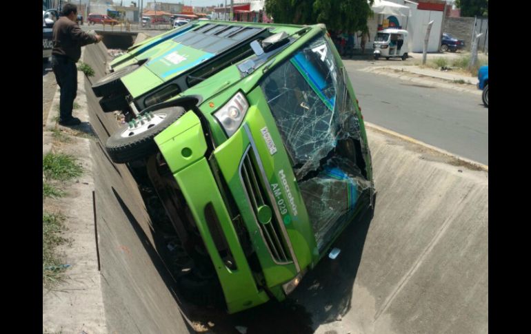 Jalisco | El midibús recién había salido de la terminal, por lo que sólo llevaba dos pasajeros Ruta de Macrobús se va a canal en Tlajomulco El midibús de la ruta A-19 recién había salido de la terminal, por lo que sólo había dos pasajeros Por: EL INFORMADOR 28 de abril de 2016 - 14:52 hs El camión estaba volcado sobre su costado izquierdo dentro de un canal pluvial que se hallaba seco. ESPECIAL / GUADALAJARA, JALISCO (28/ABR/2016).- Un midibús de la ruta alimentadora del Macrobús se fue este jueves a un canal en el cruce de avenida Chulavista y Cerro Alcalá, en el fraccionamiento Chulavista, en Tlajomulco de Zúñiga, según reportes de autoridades municipales. Poco antes de las dos de la tarde, Bomberos de Tlajomulco recibieron la alerta del hecho, tras lo que se dirigieron unidades al punto. En el sitio se encontraron con el midibús AM-029 de la ruta A-19 alimentadora del Macrobús, el cual estaba volcado sobre su costado izquierdo dentro de un canal pluvial que se hallaba seco. Según explicó Bomberos de Tlajomulco, el camión recién había salido de la terminal, por lo que solamente habían abordado dos personas que no resultaron con lesión alguna. Se procedieron a labores para extraer el vehículo del lugar. Temas Seguridad Transporte Público Accidentes Bomberos Lee También Helicóptero se desploma en Huntington Beach, California; reportan cinco heridos Tres personas resultan lesionadas tras explosión de camión en carretera México-Puebla Atención, MiBici cerrará 12 estaciones por la Romería 2025 Detienen a asesino de joven en partido de futbol Recibe las últimas noticias en tu e-mail Todo lo que necesitas saber para comenzar tu día Registrarse implica aceptar los Términos y Condiciones