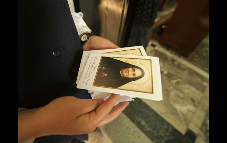 Jalisco | La oración ya ha sido aprobada por el arzobispado Santa Lupita ya tiene su oración La oración ya ha sido avalada por el arzobispado de Guadalajara Por: EL INFORMADOR 12 de mayo de 2013 - 19:34 hs GUADALAJARA, JALISCO (12/MAY/2013).- "Se le ve la bondad en la cara", "¡qué bonita!", exclamó un par de mujeres que recibió una buena cantidad de estampas de Santa Lupita García Zavala en el templo de Santa Margarita, luego de salir de misa donde se celebró su canonización, pues ya circulan artículos alusivos a la religiosa zapopana que desde ahora se unió a la lista de santos mexicanos. De hecho, ya es oficial una oración dirigida a la religiosa que avaló el arzobispado de Guadalajara, donde se le atribuye ser la elegida de dios para "aliviar el dolor humano de los pobres y enfermos", y que es distribuida a través de estampas para comenzar a darle fuerza a la devoción por García Zavala. Además, en la misa que se celebró en su congregación, se pudo ver la proliferación de objetos alusivos a ella, tales como gorras, posters y cuadros con el torso de Santa Lupita, en sus últimos años de vida. Quienes pudieron obtener por lo menos la estampa con la oración de la nueva religiosa, no perdieron la oportunidad de pedirle al obispo auxiliar de Guadalajara, Miguel Romano Gómez, que la bendijera o por lo menos la tocara, para llevarla a casa y pedirle su intercesión. EL INFORMADOR / VIOLETA MELÉNDEZ Temas Municipios Iglesia Católica Madre Lupita Lee También Así se vive la Romería 2025 este domingo 12 de octubre (FOTOS) Veinticinco años Evangelio de hoy: Jesús se deja encontrar en nuestro sufrimiento Romería de la Virgen de Zapopan: “Pido que haya paz en el país” Recibe las últimas noticias en tu e-mail Todo lo que necesitas saber para comenzar tu día Registrarse implica aceptar los Términos y Condiciones