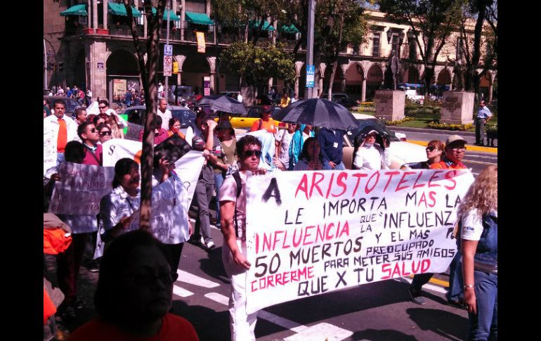 Jalisco | Trabajadores eventuales demandan la falta de pago y despidos injustificados Se manifiestan empleados del sector salud de Jalisco Trabajadores eventuales demandan la falta de pago y despidos injustificados Por: EL INFORMADOR 5 de febrero de 2014 - 14:36 hs Durante unos momentos, los manifestantes cerraron la avenida Alcalde, frente a Catedral. / GUADALAJARA, JALISCO (05/FEB/2014).- Alrededor de 100 empleados eventuales de diferentes instituciones médicas como IMSS, ISSSTE, Hospitales Civiles y Secretaría de Salud ( SSJ), se manifiestan en el centro tapatío para demandar falta de pago y despidos injustificados, así como la falta de prestaciones y bases laborales. El contingente salió de las oficinas delegacionales del IMSS Jalisco; de ahí partió hacia el Antiguo Hospital Civil "Fray Antonio Alcalde" y las oficinas del ISSSTE, en Palacio Federal, para después caminar por avenida Alcalde, rumbo a Palacio de Gobierno. Durante unos minutos cerraron la avenida, frente a la Catedral Metropolitana, en donde con mantas en mano y un megáfono gritaban "Aristóteles, entiende, la salud no se vende", dirigiéndose hacia el gobernador del Estado. Ahí fueron interceptados por el secretario de Gobierno, Arturo Zamora Jiménez, quien les pidió que dejaran de obstruir la calle, y que dialogaría con una comisión de empleados de cada una de las instituciones, para escuchar sus peticiones y quejas. En estos momentos, el líder del recién creado Sindicato Independiente de Trabajadores, Israel González Ramírez, y un grupo de trabajadores, dialogan con Zamora Jiménez y el secretario de Salud Jalisco, Jaime Agustín González Álvarez, quien acudió a Palacio Estatal tras ser llamado por el secretario general. Mientras tanto, los manifestantes esperan en la Plaza de Armas. El viernes pasado, este medio publicó que los 240 trabajadores del programa Patio Limpio de la SSJ, encargado de labores contra el dengue, no han recibido el pago de las dos primeras quincenas de enero, y la respuesta de la autoridad es que el recurso para pagar llegará hasta marzo o abril. ¿Qué piden? Que cese el hostigamiento laboral y despidos injustificados. Que haya abasto de medicamentos. Que se homologuen sueldos de trabajadores eventuales con los basificados. Que se den las prestaciones de ley a los trabajadores. Que se respete antigüedad y no se otorguen bases a "amigos" del gobierno en turno. EL INFORMADOR / THAMARA VILLASEÑOR Temas Manifestaciones en Jalisco Salud Secretaría de Salud Jalisco Lee También Muere conductor tras choque entre camioneta y camión en Arandas Vivienda para el Bienestar: ¿Cuándo inicia la tercera etapa de registro? Abre centro de acopio del DIF para afectados por lluvias en Puerto Vallarta Avalan nueva Ley Orgánica de la Armada de México Recibe las últimas noticias en tu e-mail Todo lo que necesitas saber para comenzar tu día Registrarse implica aceptar los Términos y Condiciones