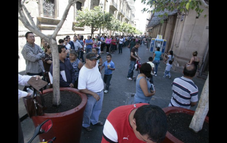 Jalisco | Hoy fue último día para pagar con descuento Se saturan recaudadoras estatales Hoy fue último día para pagar con descuento Por: EL INFORMADOR 1 de abril de 2013 - 15:20 hs Se observaron largas filas afuera de las recaudadoras. / GUADALAJARA, JALISCO (01/ABR/2013).- Desde temprana hora, incluso antes de que las oficinas de algunas recaudadoras estatales abrieran sus puertas, ya se apreciaban largas filas en algunos puntos; poco antes de las 08:30 horas. Las filas que formaron la gente llegaban a los aproximadamente 20 metros de largo, como ocurrió en la recaudadora 000, ubicada en la esquina de las calles Pedro Moreno y Ramón Corona, en el Centro Tapatío. Y es que hoy fue el último día para que los propietarios de automóviles realizaran su pago del refrendo vehicular todavía con 30 por ciento de descuento. Mañana -2 de abril- ya no aplicará dicho beneficio, lo cual saturó las salas de algunas recaudadoras y repercutió en largas filas de personas, aquellas que hicieron desidia en pagar a tiempo y recibir algún tipo de descuento y que hoy, dejaron para el último día la realización de dicho pago. La oficina recaudadora número 000 del Centro de Guadalajara fue una de las más concurridas. Por la calle peatonal Pedro Moreno se llegó a formar una fila de hasta media cuadra; algunos usuarios se quejaron de la lentitud del servicio, pero no todos coincidieron en esto, pues, a pesar que hubo personas que esperaron hasta 30 minutos en la fila, dijeron, avanzaba pronto. El señor Jaime Cuéllar acepta que la culpa no es de quienes laboran en la recaudadora, ni del servicio, pues dice: "La culpa es de nosotros por dejar todo para el último; la verdad ni me acordaba, hasta que supe ayer y pues me vine para obtener aún el descuento. Llevo cerca de 20 minutos formado, pero la fila avanza rápido", aseguró. En otros puntos de pago, como en la recaudadora número 094, ubicada en Tlaquepaque, la fila empezó a disminuir conforme se acercaba el mediodía. Cerca de las 12 horas, la línea se apreciaba con unas 15 personas, aunque por dentro, la saturación en las oficinas era un hecho: los cajeros no podían siquiera ir a desayunar. La que también presentó gran afluencia de personas fue la recaudadora marcada con el número 003, ubicada en la Avenida Circunvalación Oblatos esquina con Artesanos, ahí sí la gente desesperada, formó largas filas para hacer su pago; algunos usuarios se quejaron del servicio, como Margarita Ursúa, quien dijo: "es que hace mucho calor adentro y afuera, además algunas cajas están solas y eso atrasa todo; yo llegué ya tardecito, por eso a la mejor hice más tiempo, porque mi hermano vino como a las 9 de la mañana y se formó sólo como 10 minutos; yo me formé más de 25". Así, la desidia de pagar a tiempo, aunado a que todos quieren obtener el beneficio, saturó y atiburró de gente no sólo las salas de pago, sino las banquetas que circundan a las recaudadoras. EL INFORMADOR / ÉDGAR FLORES Temas Gobierno del Estado Refrendo y tenencia Sepaf Recibe las últimas noticias en tu e-mail Todo lo que necesitas saber para comenzar tu día Registrarse implica aceptar los Términos y Condiciones