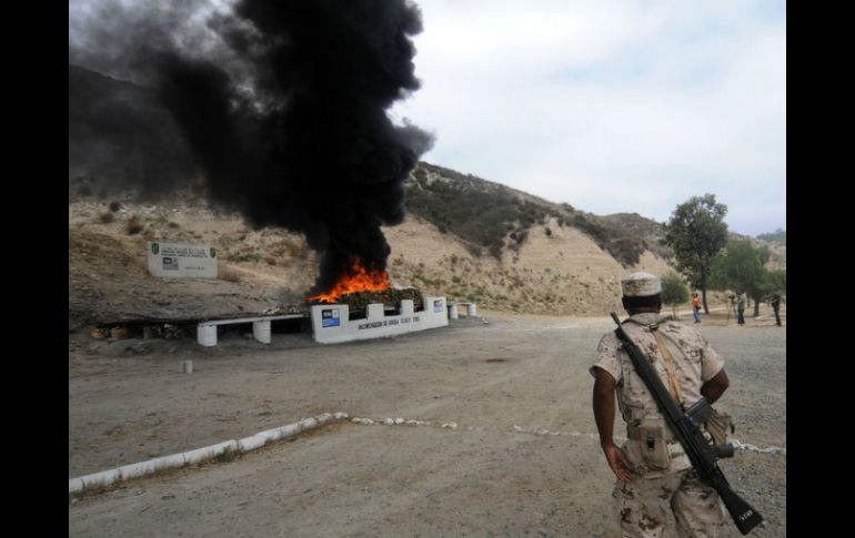 Jalisco | En 28 días quemaron 213 sembradíos de mariguana y detuvieron a 77 personas Soldados de la V Región Militar destruyen 634 plantíos de amapola En 28 días quemaron 213 sembradíos de mariguana y detuvieron a 77 personas Por: EL INFORMADOR 7 de marzo de 2014 - 08:20 hs Soldados de la V Región Militar queman tres mil 79 kilogramos de mariguana y 57 kilos y medio de semilla. ARCHIVO / ZAPOPAN, JALISCO (07/MAR/2014).- En un periodo de 28 días, soldados de la V Región Militar destruyeron 634 plantíos de amapola, 213 sembradíos de mariguana y sorprendieron a 77 personas realizando actividades ilegales, y quienes fueron entregadas a un agente del Ministerio Público de la Federación para ser investigadas. El general de División Diplomado de Estado Mayor, Roberto Gustavo García Vergara, informó en un comunicado de prensa, que además quemaron tres mil 79 kilogramos de mariguana, 57 kilos y medio de semilla, encontraron cuatro secaderos, dos narcolaboratorios, tres campamentos y una toma clandestina a los ductos de Petróleos Mexicanos (Pemex). La V Región Militar tiene acciones en los estados de Aguascalientes, Zacatecas, Nayarit, Colima y Jalisco, y lo asegurado fue realizado durante el mes de febrero. Otros aseguramientos de los militares: • 96 dosis de cocaína. • 23 dosis de marihuana. • Cuatro dosis de crystal. • 18 mil pastillas psicotrópicas. • 49 armas de fuego de diferentes calibres. • 209 cargadores para armas de fuego. • Cinco mil 45 balas de diferentes calibres. • Una granada. • 22 mil 462 pesos. • 403 dólares. • 29 mil 810 litros de gasolina. • Mil 560 litros de diésel. • 160 litros de precursores químicos. • Siete equipos de comunicación. • Una antena ilícita. • 46 vehículos. • Dos motocicletas. • Una cuatrimoto. ¿Cómo denunciar ante de la V Región Militar? Soldados de la V Región Militar invitan a la ciudadanía a denuncia al crimen organizado de forma anónima al teléfono (33) 3658-1705 y al correo electrónico: denuncia.vrm@mail.sedena.gob.mx Temas Seguridad Sedena Ejército Mariguana Recibe las últimas noticias en tu e-mail Todo lo que necesitas saber para comenzar tu día Registrarse implica aceptar los Términos y Condiciones