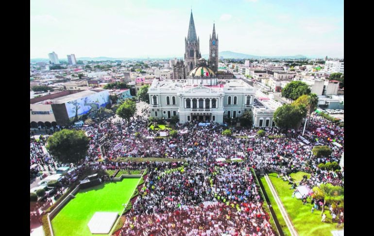 Jalisco | Estudiantes de la UdeG exigen justicia para los 43 desparecidos en Ayotzinapa '¡Somos esa voz que ellos no esperaban!' Miles de personas salen a las calles para exigir justicia para los 43 normalistas desaparecidos en Ayotzinapa Por: EL INFORMADOR 23 de octubre de 2014 - 03:13 hs GUADALAJARA, JALISCO (23/OCT/2014).- La inquieta llama baila en el pábilo de la vela y desparrama, alrededor de la órbita cristalina del vaso de vidrio, una débil luz amarilla. Ese tenue resplandor ilumina una cartulina rectangular y amplia que se extiende sobre el suelo, a un costado del quiosco de la Plaza de Armas. Sobre la cartulina está escrito un mensaje con letras mayúsculas: “Ayotzinapa vive. Alto a la criminalización y la militarización. Nos quitaron tanto que nos quitaron el miedo”. A un lado del mensaje, el dibujo de un puño cerrado. Ninguno de los presentes, exultantes en su indignación, ignora esas palabras. Si, como señalan los cronistas, en algún tiempo la Plaza de Armas fue escenario de ejecuciones y penas corporales por diferentes delitos, en esta ocasión su quiosco fue el espacio en el que un haz ciudadano pidió justicia para los 43 normalistas de Ayotzinapa que desaparecieron desde el 26 de septiembre pasado. “¡Somos esa voz que ellos no esperaban!”, gritó un estudiante de la Escuela Normal de Atequiza. En sus consignas, él y sus compañeros recordaron a Genaro Vázquez, al “Che” Guevara y a Lucio Cabañas; dijeron luchar por una educación científica y popular; afirmaron que la marcha no era de fiesta, sino de lucha y de protesta. La manifestación, que a las cinco de la tarde partió de La Normal, se extendió por Avenida Alcalde y se detuvo, hinchada de descontento, sobre la Plaza de Armas. Uno de los organizadores afirmó que en la marcha se aglutinaron alrededor de ocho mil disconformes. En la protesta estuvo presente un hombre que se identificó como alumno de la Escuela Normal Rural de Ayotzinapa, quien agradeció a los presentes por demostrar que existe unidad entre las personas conscientes y entre aquellos que no olvidan, ni perdonan, ni aceptan un no como respuesta. Por la mañana, convocados por la Federación de Estudiantes Universitarios (FEU), alumnos de la UdeG de diferentes niveles y planteles también salieron a las calles para exigir justicia para los 43 normalistas desaparecidos. Los cerca de nueve mil asistentes se concentraron en la explanada del edificio administrativo de la UdeG. Temas Manifestaciones en Jalisco Municipios Guerrero Lee También Autos con estas placas deben realizar la Verificación Vehicular antes del 31 de octubre Gaby Cárdenas destaca avances en materia de cuidados en su primer año legislativo Reportan carambola en autopista a Morelia Muere conductor tras choque entre camioneta y camión en Arandas Recibe las últimas noticias en tu e-mail Todo lo que necesitas saber para comenzar tu día Registrarse implica aceptar los Términos y Condiciones