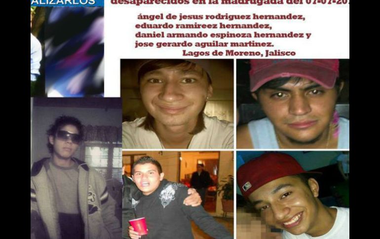 Jalisco | La FGE indica que al continuar con las investigaciones se detuvo a dos personas más Suman seis arraigados por desaparecidos en Lagos de Moreno La FGE indica que al continuar con las investigaciones se detuvo a dos personas más Por: EL INFORMADOR 22 de julio de 2013 - 16:02 hs Familiares y amigos han realizado manifestaciones por la desaparición de las víctimas. ARCHIVO / GUADALAJARA, JALISCO (22/JUL/2013).- La Fiscalía General del Estado (FGE), ya tiene a seis personas arraigadas por la desaparición de un grupo de jóvenes vecinos del municipio de Lagos de Moreno, ubicado en la Región Altos Norte del Estado. De acuerdo con informes de la FGE, el 17 de julio de 2013, un Juzgado de aquel municipio concedió a un agente del Ministerio Público la orden de arraigo contra Carlos Alfredo Alcázar Zambrano, alias “El Bebé”, de 21 años; Juan Arnulfo Andrade Sotelo, apodado “El Junior”, de 23 años, Martín Villa Antimo, conocido como “El Chango” o “El Changoleón”, de 27 años; y contra Marco Antonio Aguiñaga Santoyo, de 23 años. Actualmente las cuatro personas se encuentran en la Casa de Arraigo de la FGE, ubicada en la Zona Metropolitana de Guadalajara (ZMG) por la desaparición de seis jóvenes. Los desaparecidos son: Ángel de Jesús Rodríguez Hernández, de 19 años; Daniel Armando Espinoza Hernández, de 22 años; Eduardo Isaías Ramírez Hernández, de 21 años; José Gerardo Aguilar Martínez, de 18 años; Marco Antonio Ramírez Cárdenas, de 19 años, y Christian Fabián Ávila Cardona, de 18 años. La dependencia de justicia, explicó que al continuar con las investigaciones del caso fueron detenidos dos hombres más, en la cabecera municipal de Lagos de Moreno debido a que les encontraron armas de fuego, pero no se tiene la certeza que estas dos últimas personas, estén implicados en el caso. Los dos detenidos se identificaron como Sergio Grajeda Aguilar, quien también se hace llamar Juan Carlos Mateos Ávila, de 24 años de edad, vecino del barrio de San Juan Bosco de la ZMG, y Fabián González Rodríguez, quien se cambia el nombre por el de Gilberto Velázquez Jiménez, de 23 años, originario de los Altos de Jalisco, y que presuntamente son miembros del Cártel de Jalisco Nueva Generación (CJNG). Ellos fueron detenidos cuando abordaban una camioneta Chevrolet Colorado, ya que empuñaban cada uno, un fusil AK-47, y en un compartimento de la caja de carga del automotor, llevaba cuatro fusiles AR-15, y más de 400 balas de diversos calibres. Por el caso, familiares y amigos han realizado manifestaciones por la desaparición de las víctimas quienes fueron vistos por última vez la madrugada del 7 de junio del 2013, cuando acudieron a una fiesta. Además se prevé que el próximo miércoles los parientes y conocidos, vuelvan a salir a las calles para exigir que los seis jóvenes vuelvan a sus casas. Temas Seguridad Detenidos en Jalisco Desapariciones en Jalisco Lee También Policía de Zapopan realiza cinco detenciones en una semana Astros de Jalisco doblega a Xalapa y se pone a un juego de la Final de Zona Escuela Gómez de Mendiola celebra sus primeros 75 años al servicio de los tapatíos Proyectan expansión de Placencia Muebles Recibe las últimas noticias en tu e-mail Todo lo que necesitas saber para comenzar tu día Registrarse implica aceptar los Términos y Condiciones
