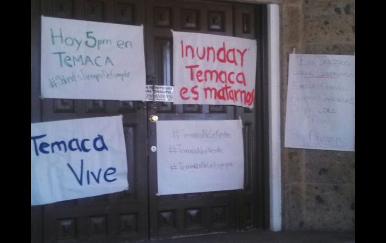 Jalisco | Miembros de Salvemos Temacapulín, Acasico y Palmarejo se manifiestan en Casa Jalisco 'Temaca' pide a gobernador mantener su palabra Miembros de Salvemos Temacapulín, Acasico y Palmarejo se manifiestan en Casa Jalisco Por: EL INFORMADOR 11 de abril de 2014 - 12:40 hs Manifestantes de Temacapulín cuelgan letreros en la entrada de Casa Jalisco en pedimento de hablar con Aristóteles Sandoval. / GUADALAJARA, JALISCO (11/ABR/2014).- "¡Temaca no se rinde, Temaca no se vende, Temaca no se expropia!". Bajo este lema, miembros del comité Salvemos Temacapulín, Acasico y Palmarejo acudieron hoy a las instalaciones de Casa Jalisco para obtener una respuesta del Gobernador por el comunicado de prensa que lanzaron el día de ayer. Este boletín señalaba la inviabilidad de mantener la cortina de concreto de la presa El Zapotillo en 80 metros, altura que había sido determinada por la Suprema Corte de Justicia de la Nación (SCJN). De acuerdo a la Comisión Nacional del Agua (Conagua), el mantener dicha altura pondría en permanente riesgo a los habitantes de Temacapulín, por lo que se tendrá que elevar la cortina y reubicar a los pobladores de la zona. "Reprobamos a través de un comunicado de prensa que el gobernador se haya retractado de su compromiso de proteger los derechos de la comunidad de Temacapulín que públicamente había prometido proteger", declaró el padre Gabriel Espinosa Íñiguez, vocero del comité. EL INFORMADOR / DANIELA CASTILLO Temas Gobierno del Estado Conagua Presa El Zapotillo Aristóteles Sandoval Lee También Anuncian escuelas de tiempo completo en Jalisco Inician auditorías al SIAPA como parte de reingeniería "La Mañanera" de Sheinbaum de hoy martes 21 de octubre de 2025 El PAN, ¿refundar qué? Recibe las últimas noticias en tu e-mail Todo lo que necesitas saber para comenzar tu día Registrarse implica aceptar los Términos y Condiciones