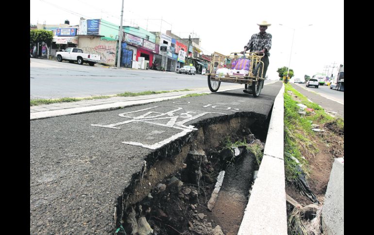 Jalisco | Usuarios exigen a las autoridades reparar los daños Temporal deja intransitable la ciclovía de 8 de Julio La ciclovía de la Avenida 8 de Julio tiene tres tramos dañados, uno de más de tres metros está destruidos y en los otros dos, se acumulan piedras y tierras, lo que dificulta el paso de los ciclistas Por: EL INFORMADOR 28 de agosto de 2012 - 03:20 hs Las intensas lluvias de las últimas semanas han provocado daños severos a la carpeta asfáltica en el carril para ciclistas. / TLAQUEPAQUE, JALISCO (28/AGO/2012).- Son escasas y también son dañadas por los baches. La ciclovía de la Avenida 8 de Julio es de las pocas rutas para la bicicleta de la ciudad y no se puede usar en toda su longitud. El trayecto es interrumpido en tres puntos: un tramo de más de tres metros está destruido y en otros dos se acumulan piedras y tierra, lo que dificulta el paso de los ciclistas. El reclamo de los usuarios de la vía es para que el Ayuntamiento de Tlaquepaque repare las partes dañadas y evitar que se deteriore el pavimento. También piden, como parte del mantenimiento, se retiren las piedras y los materiales que arrastra la lluvia, que obstruyen el camino. A “torear” los vehículos, no queda de otra, lamentó Óscar Torres, quien cruza la Avenida 8 de Julio caminando con su bicicleta por un lado, y por el otro, tomando de la mano a sus dos hijos. “Tengo que cargar la bici porque no se puede caminar por la ciclovía. Tampoco se puede andar por las banquetas, porque hay muchas cosas que venden y estorban. Las lluvias causaron todo esto”. El hombre avanza por 8 de Julio a la altura de la calle Rosa Medina, en la Colonia La Mezquitera. En este lugar está destruido el camino ciclista en un tramo. También desde hace un mes, aproximadamente, las piedras se acumulan en dos puntos de la vía ciclista, sin que la autoridad acuda a despejar el área para su segura utilización, señalan usuarios. Algunos varones pasan pedaleando sus bicicletas, unos en el arroyo de la arteria, conviviendo con los automóviles; otros tratan de pasar por donde se acumula la tierra y algunos optan por caminar donde se dificulta el tránsito. “Allá también ya se desbarató el pavimento, se cayó… Como un mes tiene aquí la tierra y las piedras, no se puede pasar”, señaló por su parte Héctor Michel Santos Guerrero, habitante de la colonia San Cristóbal. La vía ciclista corre por el camellón de 8 de Julio, desde la calle Rosa Medina hasta poco antes de Periférico Sur. El resto de la ruta se observa en general en buenas condiciones. Temas Municipios Temporada de lluvias Ciclismo urbano Lee También "Sonia" toma fuerza en el Pacífico; aparecería en días Clima HOY: Lluvia en GDL por la noche este 14 de octubre Isaac del Toro podría competir en México; esto es lo que se sabe Zonas de Jalisco que esperan lluvia en las próximas horas Recibe las últimas noticias en tu e-mail Todo lo que necesitas saber para comenzar tu día Registrarse implica aceptar los Términos y Condiciones