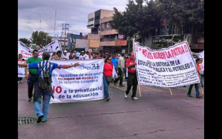 Jalisco | Docentes de Jalisco terminan su mitin; liberan vialidades del Centro Histórico Termina manifestación de maestros Docentes de Jalisco terminan su mitin; liberan vialidades del Centro Histórico Por: EL INFORMADOR 21 de septiembre de 2013 - 15:08 hs Los inconformes afirmaron que fueron 28 mil los participantes en la marcha. / GUADALAJARA, JALISCO (21/SEP/2013).- El mitin que realizaron los maestros se dio por terminado cerca de las 15:00 horas, pero tardaron cerca de media hora en desbloquear la Avenida 16 de septiembre. Minutos antes, sobre las avenidas Hidalgo y Juárez ya se circulaba con normalidad. Los maestros, quienes marcharon por tercer sábado consecutivo en el Estado contra la reforma educativa, se retiraron después de que un grupo de unas 15 personas fuera recibido por el secretario general de Gobierno, Arturo Zamora; él fue el encargado de tomar el pliego petitorio que llevaban los docentes y de acordar una mesa de diálogo para el próximo miércoles, en donde se hablará sobre las bases jurídicas de las exigencias de los maestros, entre las que está una controversia constitucional contra la referida reforma. Según la Unidad Estatal de Protección Civil y Bomberos, fueron cuatro mil manifestantes; sin embargo, los inconformes afirmaron que fueron 28 mil. EL INFORMADOR / ROBERTO MEDINA Temas Manifestaciones en Jalisco Vialidad Reforma Educativa Recibe las últimas noticias en tu e-mail Todo lo que necesitas saber para comenzar tu día Registrarse implica aceptar los Términos y Condiciones