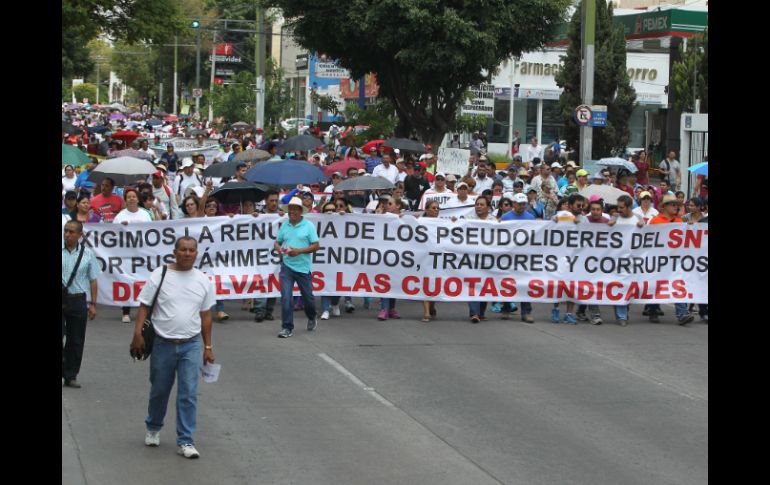 Jalisco | Los maestros lograron presentar su pliego petitorio a los diputados de Jalisco Termina marcha magisterial con pocos acuerdos Los maestros lograron presentar su pliego petitorio a los diputados de Jalisco en el que piden la abrogación de la Reforma Educativa Por: EL INFORMADOR 15 de julio de 2015 - 17:34 hs Fue después de las 18:00 horas, cuando los profesores liberaron la avenida Hidalgo y permitieron el paso de vehículos. EL INFORMADOR / R. Tamayo GUADALAJARA, JALISCO (15/JUL/2015).- Después de siete horas de colapso vial en el Centro Histórico de Guadalajara, los profesores inconformes por la reforma educativa obtuvieron algunos acuerdos de los diputados en el Congreso de Jalisco. Juan Carlos Balderas, líder del Movimiento de Bases Magisteriales en Jalisco anunció que uno de los tres acuerdos logrados con el legislativo, fue posponer la discusión de las evaluaciones magisteriales hasta el siguiente viernes. "Se pedirá un punto de acuerdo en donde el legislativo solicite la cancelación de la evaluación educativa en el Estado de Jalisco y se vote antes del 15 de agosto". La comisión de 20 docentes que ingresó al legislativo a entregar el pliego petitorio, también solicitaron al diputado Juan Manuel Alatorre Franco, presidente de la Comisión de Educación que suba al pleno la abrogación de la Reforma Educativa. En el mitin se anunció que Jalisco se suma a la lucha magisterial nacional, y a la resistencia en contra de las evaluaciones magisteriales. Los profesores fueron convocados este viernes, para presenciar los acuerdos de su pliego petitorio. También se les dijo que no habrá periodo de vacaciones, ya que el gremio se encuentra en alerta máxima. "En base al voto de confianza de la Coordinadora Nacional de Trabajadores de la Educación, se publicarán las acciones y días de lo que se realizará en vacaciones. Todos estamos en alerta". También, se les invitó a participar a una próxima manifestación en acompañamiento a los trabajadores del IMSS, la cual saldrá de la Minerva a las 17:00 horas del viernes 31 de julio. Fue después de las 18:00 horas, cuando los profesores liberaron la avenida Hidalgo y permitieron el paso de vehículos. EL INFORMADOR / FABIOLA HERNÁNDEZ Temas Congreso local Manifestaciones en Jalisco SNTE Reforma Educativa Lee También Dónde ver EN VIVO Charros de Jalisco vs Águilas de Mexicali por la serie inaugural de la LMP Senado aprueba reforma a Ley de Amparo: uso digital y freno a evasión fiscal Ratifican a Consuelo González como magistrada del Supremo Tribunal de Justicia de Jalisco Gobernador reconoce diálogo con coordinadores parlamentarios Recibe las últimas noticias en tu e-mail Todo lo que necesitas saber para comenzar tu día Registrarse implica aceptar los Términos y Condiciones