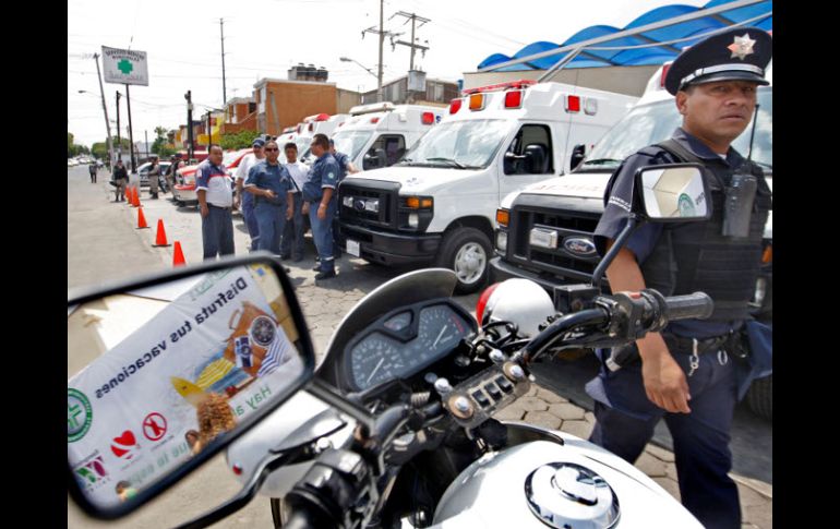 Jalisco | Pondrán módulos de apoyo en diversas vialidades Tlaquepaque despliega mil elementos Miembros de la Policía, Servicios Médicos Municipales y de Protección Civil y Bomberos participarán para garantizar la seguridad de los paseantes Por: EL INFORMADOR 16 de abril de 2011 - 04:09 hs El alcalde de Tlaquepaque, Miguel Castro, dio el banderazo de arranque a vehículos de emergencias para el operativo vacacional.S. NÚÑEZ / TLAQUEPAQUE, JALISCO (16/ABR/2011).- Tlaquepaque también arrancó el operativo vacacional, con la participación de mil elementos. El presidente municipal, Miguel Castro Reynoso, dio el banderazo de salida de dos ambulancias nuevas que se agregan a las ocho existentes en la Cruz Verde, con las que se reforzará este operativo. El Ayuntamiento pondrá módulos de apoyo en la Carretera libre a Zapotlanejo, Periférico y Carretera a Chapala, Periférico y Camino al ITESO, así como en el Nodo Revolución. Temas Municipios Semana Santa Ayuntamiento de Tlaquepaque Policía de Tlaquepaque Recibe las últimas noticias en tu e-mail Todo lo que necesitas saber para comenzar tu día Registrarse implica aceptar los Términos y Condiciones