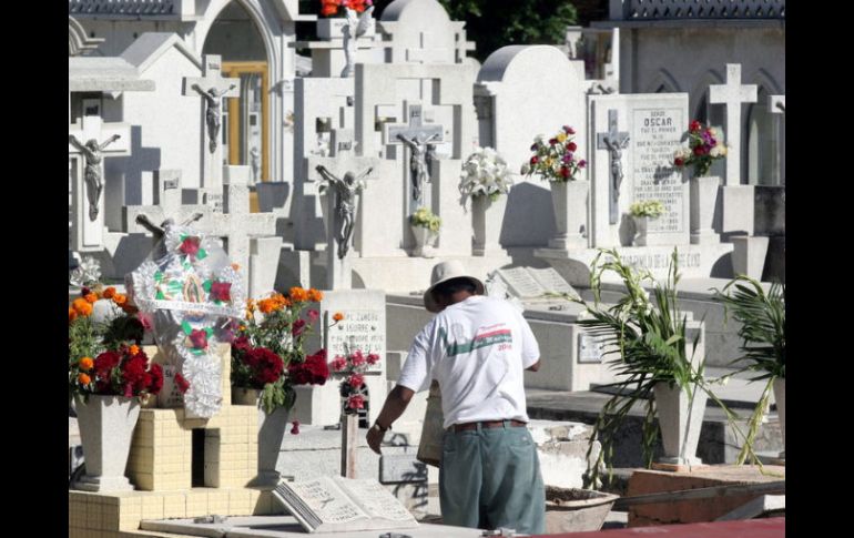Jalisco | En los trabajos participan diversas dependencias municipales Tlaquepaque trabaja en operativo de seguridad de panteones El municipio cuenta con nueve cementerios en diferentes delegaciones; dos de ellos se encuentran en la cabecera municipal. Por: EL INFORMADOR 19 de octubre de 2011 - 08:41 hs El área de Cementerios realiza acordonamientos en tumbas que se encuentran colapsadas. / TLAQUEPAQUE, JALISCO (19/OCT/2011.).- Con el objetivo de resguardar la integridad de los visitantes que acuden anualmente a los nueve panteones de Tlaquepaque, la dirección de Cementerios Municipales ya trabaja en un operativo de seguridad. El titular de la dependencia, Armando Ramos Chávez, comentó que el operativo incluye trabajos de las áreas de Alumbrado Público, Parques y Jardines, Agua Potable y Alcantarillado, Mantenimiento de Edificios Públicos, Seguridad Pública, Servicios Médicos, Mercados, Protección Civil y Bomberos, Pipas, por mencionar algunas. Parte de los trabajos consiste en la limpieza de áreas verdes y espacios públicos, así como la revisión de luminarias y la red de agua potable. Sin embargo, una de las más importantes es el acordonamiento de tumbas, para evitar percances entre los asistentes. Ramos Chávez señaló que dentro del programa de rehabilitación de tumbas, en donde se trabaja en conjunto con los dueños, se han rehabilitado el 20% de las 200 lápidas dañadas que se tenían contabilizadas hasta el año pasado. Los cementerios Dos en cabecera municipal. San Pedrito. Tateposco. San Martín de las Flores. Santa Anita. Santa María Tequepexpan. San Sebastianito. Toluquilla. López Cotilla. Temas Municipios Ayuntamiento de Tlaquepaque Día de Muertos Lee También Bajan lluvias el sábado en Guadalajara, pero se mantiene nublado ¿Cuánto tarda una persona con depresión en llegar al tratamiento? Con "Raymond" cerca, Guadalajara espera lluvias a esta hora del viernes "Raymond" AMAGA a Jalisco; lo que necesitas saber Recibe las últimas noticias en tu e-mail Todo lo que necesitas saber para comenzar tu día Registrarse implica aceptar los Términos y Condiciones