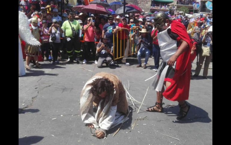 GUADALAJARA, JALISCO (14/ABR/2017).- Desde hace trece años, Miguel Iván Alejo Guareño ha personificado a Jesús en la Judea de San Martín de las Flores. Fue por una manda que pidió la oportunidad de representar a Cristo, pero después de aquella primera vez lo comenzaron a buscar para que repitiera su papel."Tuve que pagar una manda para mi santa madre que está en el cielo, fue mi debut, solicité esa oportunidad. Después ellos me buscaron, ya son tres años ininterrumpidos representando a Jesucristo y no sé por cuánto tiempo lo haga, la respuesta está en el cielo".Con una licenciatura en artes plásticas, Miguel, de 34 años de edad, comenzó en el catolicismo de la mano de su madre y actualmente se dedica a la música presentándose en bares y restaurantes. "Yo soy bohemio de corazón".Contó que le toma unos ocho meses comenzar su preparación: se deja crecer el cabello, la barba y también se prepara físicamente para soportar la larga jornada donde carga la cruz de unos cien kilogramos a lo largo de una ruta de alrededor de kilómetro y medio."Lo más importante es prepararse espiritualmente y te puedo decir que no hay vacaciones ni días de descanso. La preparación física consiste en tú a conciencia conocer tu cuerpo y saber que si ocupas condición pue salir a correr en la mañana, ejercitar en el gimnasio, como vayas viendo. Y los diálogos repasarlos las veces que sea necesario".El momento que más le demanda de su representación, cree, es cuando es castigado. "Hay muchos muy claves pero creo que cuando Cristo es golpeado y flagelado es un momento cuando tengo que flagelarme. Antes, durante y después estoy haciendo oración, pero es en ese momento cuando estoy pidiéndole a Dios que no salga lastimado, que nadie salga lastimado".Espera que con la representación los espectadores puedan recapacitar sobre su fe. "Siempre Dios nos permite tener un momento de reflexión como lo es este día, recordar a Dios por cómo murió, cómo vino y murió al minuto del salir al escenario".EL INFORMADOR / SERGIO BLANCO