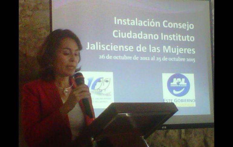 Jalisco | Está representado por 20 mujeres de diversas asociaciones Toma protesta consejo ciudadano del Instituto de las Mujeres Está representado por 20 mujeres de diversas asociaciones civiles, universidades y grupos indígenas, entre otros organismos Por: EL INFORMADOR 26 de octubre de 2012 - 16:34 hs En la imagen la presidenta del Instituto Jalisciense de las Mujeres , María Elena Cruz Muñoz. / GUADALAJARA, JALISCO (26/OCT/2012).- Esta mañana, el Instituto Jalisciense de las Mujeres (IJM) tomó protesta a las nuevas integrantes del Consejo Ciudadano del instituto 2012-2015. Está representado por 20 mujeres de diversas asociaciones civiles, universidades y grupos indígenas, entre otros organismos. La presidenta del IJM, María Elena Cruz Muñoz, informó que el consejo llevará su propia agenda durante tres años, y tendrá una representación social ante el propio instituto. “Se les presenta el programa que tiene la institución como tal, para que hagan sus aportaciones, y para que más allá de sus aportaciones, también hagan sus propuestas, porque es muy diverso el trabajo que hacen en la comunidad”. Las integrantes del consejo ciudadano fueron elegidas, luego de que la Junta de Gobierno del instituto validó cada una de las propuestas presentadas. EL INFORMADOR / THAMARA VILLASEÑOR Temas Municipios Instituto Jalisciense de las Mujeres Sociedad Lee También ¿Cuál era la relación entre el barco pirata hundido en Vallarta y Colón? No descartan episodios de lluvia dispersa este sábado en Guadalajara Inicia entrega de tarjetas Pensión Mujeres Bienestar en Jalisco; ¿cómo y dónde recogerla? Bajan lluvias el sábado en Guadalajara, pero se mantiene nublado Recibe las últimas noticias en tu e-mail Todo lo que necesitas saber para comenzar tu día Registrarse implica aceptar los Términos y Condiciones