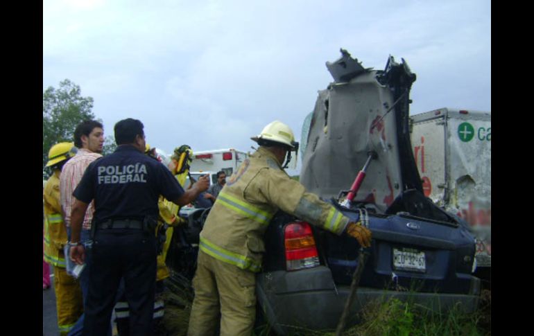 Jalisco | Resumen semanal Torretas y sirenas Las notas de seguridad más destacadas de la semana Por: EL INFORMADOR 15 de agosto de 2010 - 05:23 hs Arde fábrica de carros de golf en Zapopan Un incendio se registró el día sábado pasado en una fábrica de la colonia La Experiencia, terminó con una empresa familiar . Tras varios minutos de maniobras el fuego fue controlado y la conflagración terminó solamente con pérdidas materiales para la empresa “Golf Lozano”. Saldo blanco tras inundación en Atotonilquillo El día jueves pasado en Atotonilquillo, municipio de Chapala fueron sorprendidos en la madrugada por el desbordamiento del Arroyo Grande. De acuerdo con los residentes del sitio el agua acumulada rebasó los dos metros en su punto más álgido, afortunadamente sólo depararon en pérdidas materiale. Como resultado hubo 215 casas afectadas y, a su vez, más de mil personas que perdieron su patrimonio entero en una noche. Descubren narcolaboratorio en Guadalajara Soldados del 79 batallón de Infantería de la XV Zona Militar acudieron a realizar un operativo en la calle 66-A al cruce con República en la Colonia Blanco y Cuéllar ubicada en el Municipio de Guadalajara. Los soldados inspeccionaron la vivienda 421, en la que localizaron un narcolaboratorio el cual se presume esta instalado en al menos dos niveles de los tres pisos de la vivienda; además, se localizó droga. Mueren cinco personas en accidente en autopista México-Morelia El día viernes pasado en el kilómetro 461 de la autopista México-Morelia, ocurrió un choque múltiple en el que se involucraron cuatro vehículos, y a causa del percance se registró el deceso de cinco personas, además de que otras dos resultaron con lesiones considerables. Los vehículos participantes en este percance fueron un Dodge Avenger, color cobre, una camioneta Ford con placas de Michoacán, una camioneta F-350 de cinco toneladas, y una camioneta Ford Escape, color azul. Ejecutan a tres hombres en Las Huertas El día viernes pasado las ráfagas de al menos dos armas de grueso calibre disparadas por sicarios, terminaron con las vida de tres hombres y un trío de heridos en calles de la colonia Las Huertas. Los agresores viajaban en una camioneta Chevrolet gris, y en un Tsuru, de color blanco, de los cuales descendieron los pistoleros y abrieron fuego contra las víctimas. Los asesinos lograron escapar. Temas Seguridad Torretas y sirenas Recibe las últimas noticias en tu e-mail Todo lo que necesitas saber para comenzar tu día Registrarse implica aceptar los Términos y Condiciones