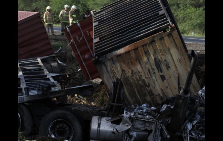 Jalisco | El incidente provocó conflictos viales durante un par de horas en la zona Tráiler se incendia tras volcarse en autopista a Colima El incidente provocó conflictos viales durante un par de horas en la zona Por: EL INFORMADOR 20 de septiembre de 2014 - 15:00 hs Unidades de rescate de Zacoalco de Torres acudieron al lugar del accidente. ESPECIAL / GUADALAJARA, JALISCO (20/SEP/2014).- La mañana de este sábado ocurrió un hecho vial en la autopista a Colima en donde participó un tráiler cargado de refacciones que se incendió. El percance provocó lesiones en el chofer y conflictos viales durante un par de horas después del accidente, alrededor de las siete de la mañana. Unidades de rescate de Zacoalco de Torres acudieron al kilómetro 11 de dicha vía, a la altura de Acatlán de Juárez, donde encontraron que el vehículo de carga se había salido de la carpeta asfáltica. Procedieron al cierre de uno de los carriles de la autopista en cada uno de los sentidos para dejar espacio para maniobrar. Aunque los primeros reportes mencionaron que el conductor, Ricardo Vargas Ponce, de 31 años, se hallaba atrapado en la cabina, éste logró escapar cuando comenzaba a incendiarse. El hombre se alejó del vehículo que derramaba combustible, el cual terminó por alcanzar el área de la carga del transporte. El conductor contó a los rescatistas que la causa del hecho fue uno de los neumáticos que estalló sobre la marcha, lo que provocó que no pudiera controlar la dirección del tráiler que fue a salir de la autopista hasta detener su marcha cuando el automotor quedó sobre uno de sus costados justo en el área que divide los sentidos de la circulación. El chofer fue trasladado con lesiones por la Cruz Roja de Ciudad Guzmán a la Zona Metropolitana de Guadalajara, donde lo internaron en el Hospital Puerta de Hierro Sur. Temas Seguridad Accidentes Protección Civil Jalisco Recibe las últimas noticias en tu e-mail Todo lo que necesitas saber para comenzar tu día Registrarse implica aceptar los Términos y Condiciones