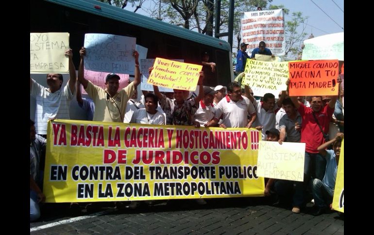 Jalisco | Alrededor de 300 choferes acuden a las afueras del Congreso; piden cese a hostigamiento Transportistas bloquean Avenida Hidalgo en protesta Alrededor de 300 choferes acuden a las afueras del Congreso para pedir el cese al hostigamiento de agentes viales Por: EL INFORMADOR 12 de abril de 2011 - 12:17 hs 'Nuestras familias también comen. Vialidad, déjanos trabajar', se lee en una de las pancartas de los choferes. L. FONSECA / GUADALAJARA, JALISCO (12/ABR/2011).- Alrededor de 300 choferes del transporte público de distintas organizaciones se manifiestan este mediodía frente al Congreso del Estado. Con su protesta obstaculizan la circulación en avenida Hidalgo. Figuran entre las demandas de los operadores, quienes portan múltiples pancartas, el cese al hostigamiento por parte de elementos de la Secretaría de Vialidad y Transporte (SVyT), quienes los sancionan por aspectos que consideran menores y mandan al corralón hasta 30 unidades al día, señaló Ricardo Aguayo Andrade, secretario General del Sindicato de Conductores del Transporte Público y Privado en General del Estado de Jalisco. “Nuestras familias también comen. Vialidad, déjanos trabajar”, se lee en una de las pancartas. También demandan a los legisladores que aprueben el esquema de ruta-empresa y se deroguen algunas agravantes del artículo 48 del Código Penal. Además del grupo de choferes que protesta sobre avenida Hidalgo, están estacionadas 11 unidades del transporte público sobre la arteria. La manifestación coincidió con el simulacro de sismo realizado en Palacio Legislativo, así como con la llegada de motociclistas que participaran en el foro: La motocicleta como alternativa de transporte. EL INFORMADOR / LETICIA FONSECA Temas Manifestaciones en Jalisco Transporte Público Vialidad SVyT Recibe las últimas noticias en tu e-mail Todo lo que necesitas saber para comenzar tu día Registrarse implica aceptar los Términos y Condiciones