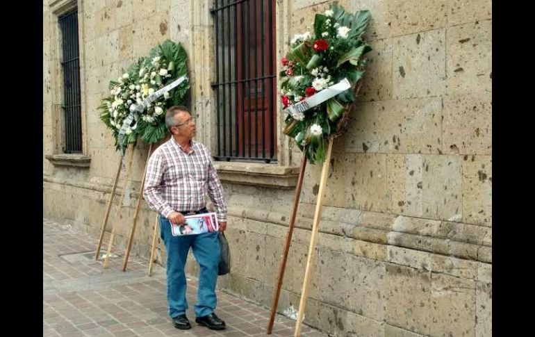 GUADALAJARA, JALISCO (27/JUL/2017).- Durante la mañana de este jueves, después de las 9:00 horas, fueron colocadas frente al Congreso del Estado varias coronas de flores alusivas a la elección del nuevo ombudsman de Jalisco.Según las fotografías del suceso, algunos de los ornamentos contenían la leyenda “La CEDH (Comisión Estatal de Derechos Humanos) ha muerto”.Los arreglos florales fueron retirados en cuestión de minutos y no fue posible obtener más información al respecto ya que los guardias del edificio se mostraron herméticos y negaron que el acontecimiento hubiera ocurrido.Este hecho ocurre un día después de la elección de Alfonso Hernández Barrón que consiguió 27 votos de los 37 disponibles de los diputados para convertirse en el nuevo titular de la Comisión Estatal de Derechos Humanos.El actual tercer visitador general de la CEDHJ asumirá el cargo el próximo 2 de agosto y permanecerá hasta 2022.