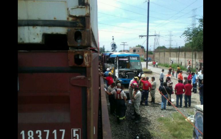 Jalisco | Hay siete pasajeros lesionados; dos de éstos se reportan como graves Tren arrolla a unidad del transporte público en El Salto El percance ocurrió sobre la Carretera El Verde a su cruce con la calle Carrillo Puerto, de la Colonia La Guadalupana Por: EL INFORMADOR 31 de julio de 2012 - 13:45 hs El choque del tren con el midibús de la ruta 644, en las vías de El Salto, provocó el cierre total de la carretera. / EL SALTO, JALISCO (31/JUL/2012).- La imprudencia de un chofer por querer ganarle el paso al tren, provocó lesiones a siete pasajeros que viajaban en un camión del transporte público. Dos de ellos están graves. El percance ocurrió sobre la Carretera El Verde a su cruce con la calle Carrillo Puerto, de la Colonia La Guadalupana, en el Municipio de El Salto. El chofer del midibús de la ruta 644-B, con número económico S-1194, Miguel Zermeño, intentó ganarle el paso al tren, sin embargo, el urbano fue arrastrado por "La Bestia" varios metros. "En total, tenemos siete personas lesionadas; dos de ellas graves y cinco más pero en estado de salud regular. El chofer, al parecer logró darse a la fuga, pues únicamente encontramos un gafete con ese nombre (Miguel Zermeño), y del chofer no supimos ya nada", informó el director de Protección Civil y Bomberos de El Salto, Isaías Carranza. Los lesionados fueron enviados al Antiguo Hospital Civil de Guadalajara por medio de ambulancias de la Cruz Roja y Cruz Verde de San Pedro Tlaquepaque, El Salto y Guadalajara. Hasta el sitio arribó personal de diversos puestos de socorro y rescatistas de la Zona Metropolitana de Guadalajara (ZMG). El choque del tren con el midibús de la ruta 644, en las vías de El Salto, provocó el cierre total de la carretera. Temas Seguridad Accidentes Cruz Roja Cruz Verde Lee También Omar 'N' es vinculado a proceso por presunto abuso sexual infantil agravado Detienen a hombre señalado por abusar sexualmente de su hija Policías de Tlaquepaque aseguran contenedores con carga millonaria Detienen a una mujer en Zapopan tras presuntamente robar un Costco Recibe las últimas noticias en tu e-mail Todo lo que necesitas saber para comenzar tu día Registrarse implica aceptar los Términos y Condiciones