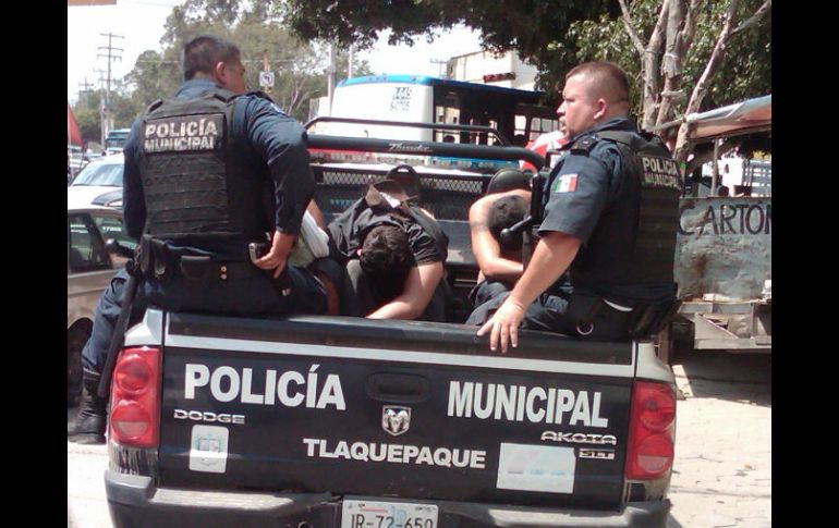 Jalisco | Los sujetos asaltaron una tienda departamental; hurtaron ropa y aparatos electrónicos Tres detenidos por robo de electrodomésticos en Tlaquepaque Los sujetos asaltaron una tienda departamental; al ser descubiertos por las autoridades, trataton de escapar Por: EL INFORMADOR 8 de agosto de 2012 - 13:10 hs Policías municipales lograron detener a los tres sujetos. / GUADALAJARA, JALISCO (08/AGO/2012).- Más tardaron en salir huyendo con el botín en sus manos, que en ser detenidos por policías municipales de San Pedro Tlaquepaque. Un trío de sujetos fue detenido por participar en el asalto a una tienda departamental de la Colonia Miravalle. Los detenidos dijeron llamarse José Barragán Luna, de 30 años de edad, con domicilio en la calle Francisco González Bocanegra, en San Juan Bosco; Oswaldo Rafael Alcantar Cadena, de 28 años, afincado en la calle Equidad, de la Colonia Ricardo Flores Magón, y Alberto Arellano García, de 27, quien vive en la calle Tonalá, se la Colonia Rey Xolotl, en la Cuna Alfarera. Uniformados de la Policía Municipal de San Pedro Tlaquepaque fueron alertados sobre el asalto a mano armada que cinco individuos, entre ellos una mujer, cometían en una tienda con razón social Coopel, situada en el cruce de las avenidas Gobernador Curiel y Arquitectura, en Miravalle. A la llegada de los uniformados de la unidad número 17307, los presuntos delincuentes ya iban de retirada a bordo de una camioneta Ford tipo van, café, modelo 982, con matrícula de circulación JAR-1914, iniciándose una persecución a la que se sumaron más unidades policiales y que culminó en Gobernador Curiel y Loma Verde, en Lomas del Cuatro, sitio donde todos los involucrados se echaron a correr, y dos lograron evadirse. Al asegurar el vehículo, en su interior se hallaron varias prendas de vestir y artículos de cuidado personal, además de un par de cuchillos y un pasamontañas. El caso fue turnado ante el juez administrativo en turno para que se determine conforme a derecho. Temas Seguridad Robos en Jalisco Policía de Tlaquepaque Lee También Interviene el Gobierno del Estado en protesta de maiceros para liberar carreteras EN VIVO: Maiceros bloquean carretera Guadalajara-Morelia ¿Por qué productores agrícolas bloquearon la carretera Morelia-Guadalajara? Camiones de carga, los más afectados por bloqueos de maiceros Recibe las últimas noticias en tu e-mail Todo lo que necesitas saber para comenzar tu día Registrarse implica aceptar los Términos y Condiciones