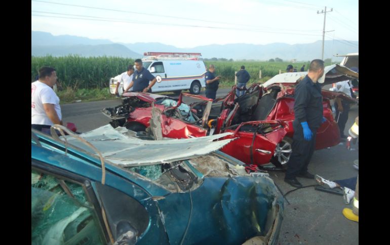 Jalisco | Uno de los vehículos era tripulado al parecer por estudiantes de El Grullo Tres personas muertas y dos lesionadas, por choque en Autlán Uno de los vehículos era tripulado al parecer por estudiantes de bachillerato de El Grullo Por: EL INFORMADOR 27 de agosto de 2015 - 10:29 hs En el choque participaron un automóvil Nissan Versa tinto, placas JLY-9471 y una camioneta Ford Windstar verde, placas JGG-8273. ESPECIAL / GUADALAJARA, JALISCO (27/AGO/2015).- Un choque ocurrido la mañana de este jueves en el municipio de Autlán dejó un saldo de tres personas muertas y cuatro más lesionados, informó la Unidad Estatal de Protección Civil y Bomberos (UEPCB). La dependencia fue alertada del hecho vial hacia las 06:55 horas tras lo que se trasladó hacia la carretera estatal 502 Autlán de Navarro-El Grullo, a la altura del kilómetro 4. En el lugar encontraron que se habían impactado casi de frente un automóvil Nissan Versa modelo 2015, placas de circulación JLY-9471, el cual era tripulado por cinco estudiantes del Bachillerato Tecnológico de El Grullo; y una camioneta Ford Windstar de modelo atrasado, placas JGG-8273, donde viajaban ocho pasajeros. De acuerdo a la dependencia, el impacto provocó que uno de los estudiantes saliera eyectado del automóvil, mientras que sus cuatro compañeros quedaron prensados dentro, de los que tres ya estaban muertos. Los rescatistas procedieron a extraer al que permanecía herido. Se procedió a llamar al Servicio Médico Forense para el levantamiento de los cadáveres y determinar las causas de los hechos. Los estudiantes fallecidos fueron identificados como Mario Andrés González Gómez de 17 años, Cinthia González Gómez de 15 años y Luis Antonio Salazar Sánchez, de 19 años. De este vehículo, los lesionados fueron los menores Cesar Arturo, de 17 años; y Sebastian Alfonso, de la misma edad. Todos eran de la misma escuela. En la Windstar sólo resultaron lesionados dos personas, Pedro Florencio Vidal, de 32 años, y Gabriela Ortega Rodríguez, de 37 años. Los lesionados fueron trasladados a recibir asistencia médica. El servicio lo atendieron de manera conjunta con la Unidad Municipal de Protección Civil de Autlán de Navarro, Cruz Roja, Seguridad Pública Municipal, Policía Vial y Ministerio Público, además de Ciencias Forenses. Temas Seguridad Accidentes con muertes en Jalisco Carreteras de Jalisco Lee También Detienen a presunto homicida en Lomas de Oblatos Puerto Vallarta es reconocida como la mejor ciudad pequeña de Latinoamérica Suspenden clases en estos 9 municipios de Jalisco ante el paso de tormenta tropical 'Raymond' Clausuran centro de rehabilitación en Tonalá por posibles delitos Recibe las últimas noticias en tu e-mail Todo lo que necesitas saber para comenzar tu día Registrarse implica aceptar los Términos y Condiciones