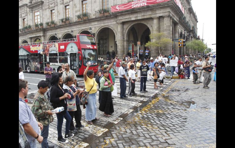 Jalisco | Las avenidas Alcalde e Hidalgo, entorpecidas por casi cinco horas Un centenar de ambulantes paraliza tránsito del Centro Los inconformes exigen a las autoridades tapatías que se les permita vender sus productos en el primer cuadro de la ciudad Por: EL INFORMADOR 15 de julio de 2011 - 03:32 hs Los comerciantes ambulantes bloquearon el cruce de Alcalde e Hidalgo, colapsando la vialidad en el Centro de Guadalajara. S. NÚÑEZ / GUADALAJARA, JALISCO (15/JUL/2011).- La circulación vehicular en el Centro de Guadalajara se vio seriamente afectada ayer, de las 13:00 a las 18:00 horas, por el cierre de las avenidas Alcalde e Hidalgo que causó, principalmente, la manifestación que protagonizaron comerciantes informales que buscan instalarse en el primer cuadro y, en una menor medida, la movilización que realizó un grupo de jóvenes con motivos religiosos. Alrededor de 100 artesanos se presentaron a las afueras de la Presidencia Municipal de Guadalajara, que se encuentra en Avenida Hidalgo, a muy poco de su cruce con Alcalde, para expresar su inconformidad porque la Dirección de Inspección y Vigilancia tapatía les ha impedido vender sus productos en puntos del Centro Histórico, como el Callejón del Diablo, en el corredor turístico Morelos. Se dijeron artesanos de origen wixárika, chiapaneco, otomí y hasta provenientes de otras regiones del país; sin embargo, la reglamentación vigente del Ayuntamiento de Guadalajara en la materia prohíbe la expedición de permisos para el comercio ambulante o informal dentro del Centro Histórico. La movilización de los jóvenes afectó de manera transitoria la vialidad, la manifestación de los comerciantes, en cambio, se mantuvo por casi cinco horas. Hasta antes del 16 de junio, día en que actuó la Dirección de Inspección y Vigilancia, la autoridad municipal se había mostrado tolerante con el comercio irregular en el Callejón del Diablo. Temas Manifestaciones en Jalisco Ayuntamiento de Guadalajara Municipios Centro Histórico Lee También Preferencia y circulación Clima en Guadalajara hoy: el pronóstico para el domingo 12 de octubre de 2025 Recuperan camión de carga robado en Tlajomulco Denuncia en su contra es para ocultar un fraude: Hermana de Omar "N" Recibe las últimas noticias en tu e-mail Todo lo que necesitas saber para comenzar tu día Registrarse implica aceptar los Términos y Condiciones