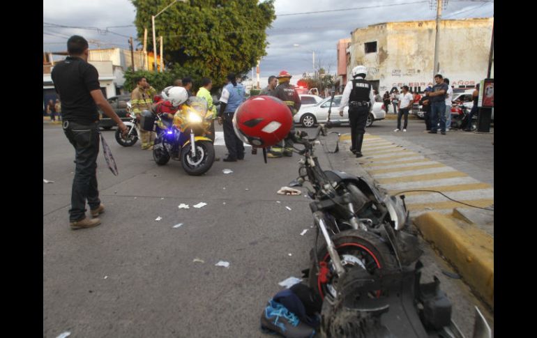 Jalisco | En el accidente fallece una persona y otra más queda herida de gravedad Un motociclista muere atropellado en Javier Mina En el accidente fallece una persona y otra más queda herida de gravedad Por: EL INFORMADOR 12 de noviembre de 2013 - 19:56 hs Debido al impacto la moto quedo despedazada. / GUADALAJARA, JALISCO (12/NOV/2013).- Una persona falleció y otra más quedó gravemente herida en un accidente vial en la avenida Javier Mina, en Guadalajara. Se trataba de dos motociclistas que fueron embestidos por una camioneta Ford Lobo blanca. Hacia las 17:00 horas, una motocicleta Vento de bajo cilindraje circulaba sobre la calle 50 con dos personas a bordo con dirección hacia el norte. Al llegar al cruce con avenida Javier Mina el conductor de la moto no se detuvo totalmente y alcanzó a invadir uno de los carriles de circulación de Javier Mina; en este punto no hay semáforos por lo que la preferencia es de los vehículos que circulan hacia el poniente sobre esta última. Fue que una camioneta que circulaba sobre el carril de la extrema izquierda pasó justo en el momento en el que los motociclistas se atravesaron, según comentaron testigos en la zona: impactó la moto de los sujetos arrojándolos sobre el pavimento y despedazando el vehículo motorizado. El conductor de la camioneta detuvo su marcha metros adelante y descendió para esperar la llegada de las autoridades. Paramédicos de la Cruz Verde de Guadalajara arribaron al sitio y encontraron a uno de los atropellados sin vida; la persona tenía alrededor de 40 años; las autoridades no revelaron a qué sexo pertenecía. Su acompañante, de unos 35 años, quedó herido de gravedad y no quiso revelar su nombre a los policías. Fue trasladado a la unidad Ruiz Sánchez para su atención. Al sitio arribó personal de la Fiscalía General y del Servicio Médico Forense. Los policías investigadores detuvieron al conductor de la camioneta, Arturo Padilla Villalobos, quien fue llevado a las instalaciones en la calle 14. Temas Seguridad Accidentes con muertes en Jalisco Atropello Lee También Puerto Vallarta es reconocida como la mejor ciudad pequeña de Latinoamérica Suspenden clases en estos 9 municipios de Jalisco ante el paso de tormenta tropical 'Raymond' Clausuran centro de rehabilitación en Tonalá por posibles delitos ¿Será obligatorio presentar la CURP biométrica para trámites escolares? Recibe las últimas noticias en tu e-mail Todo lo que necesitas saber para comenzar tu día Registrarse implica aceptar los Términos y Condiciones
