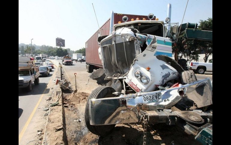 Jalisco | El percance se dio en San Juan de los Lagos Un muerto y agente de Vialidad lesionado tras choque El choque fue entre dos trailes y una patrulla de Vialidad, en el kolómetro ocho, de la carretera a San Juan de los Lagos Por: EL INFORMADOR 23 de noviembre de 2011 - 07:41 hs Al lugar acudió la Policía del Estado y elementos de seguridad del municipio. / SAN JUAN DE LOS LAGOS, JALISCO (23/NOV/2011).- Fuerte accidente vial en la carretera a San Juan de los Lagos deja como saldo un muerto y dos lesionados. El choque entre tres vehículos ocurrió al filo de las 7:30 de la mañana, hoy miércoles, justo en el kilómetro ocho, dejando como saldo un muerto y dos lesionados. El percance se dio entre dos trailers y una patrulla de Vialidad, el conductor de uno de los trailers perdió la vida luego de que su vehículo cayera a un barranco de aproximadamente 50 metros de profundidad. Además de la víctima mortal, Según el reporte de Protección Civil del Estado, una persona y un agente de Vialidad resultaron heridos. Al lugar de los hechos acudió la Policía del Estado y elementos de seguridad de San Juan de los Lagos. Temas PGR Accidentes con muertes en Jalisco Municipios Recibe las últimas noticias en tu e-mail Todo lo que necesitas saber para comenzar tu día Registrarse implica aceptar los Términos y Condiciones