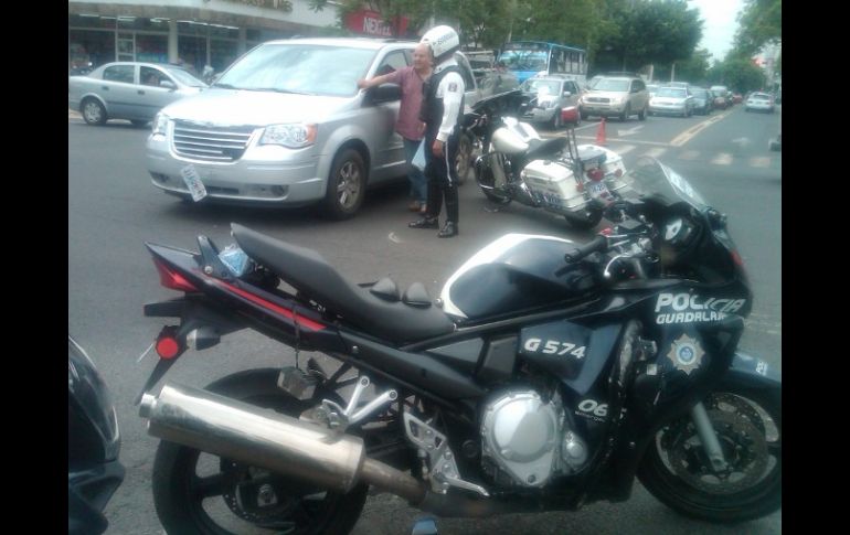 Jalisco | Un oficial en su moto y una camioneta chocaron en el cruce de la arteria con Américas Un policía lesionado y caos vial deja choque en Avenida Vallarta Un oficial en su moto y una camioneta chocaron en el cruce de la arteria con Américas Por: EL INFORMADOR 7 de julio de 2011 - 12:51 hs Un agente de Vialidad entabla diálogo con el conductor de la camioneta involucrada en el incidente. M PATIÑO / GUADALAJARA, JALISCO (07/JUL/2011).- En el cruce de las avenidas Américas y Vallarta, el choque entre un vehículo particular y una motocicleta de la Policía de Guadalajara, dejó como saldo un uniformado municipal lesionado y problemas a la circulación vial en el punto. Se trata del oficial Gabriel Maciel Calvario, mientras que el tripulante del automotor, una Town and Country, responde al nombre de Félix Avelar. Ambos refieren que al circular por el cruce referido tenían la luz del semáforo en verde. Sin embargo, serán los peritajes los que deslinden responsabilidades. En el cruce se registró una intensa carga vehicular. EL INFORMADOR / MARTÍN PATIÑO Temas Seguridad Accidentes Policía de Guadalajara Recibe las últimas noticias en tu e-mail Todo lo que necesitas saber para comenzar tu día Registrarse implica aceptar los Términos y Condiciones