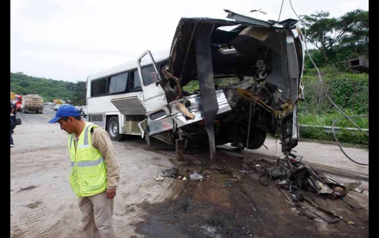 Jalisco | La embestida de un autobús contra un tráiler deja como saldo, además, 37 heridos Vacaciones terminan en tragedia para ocho personas La embestida de un autobús contra un tráiler deja como saldo, además, 37 heridos Por: EL INFORMADOR 25 de julio de 2011 - 03:20 hs Los heridos fueron enviados a nosocomios privados y puestos de socorros. S. NÚÑEZ. / GUADALAJARA, JALISCO (25/JUL/2011).- Camiones destrozados, sangre derramada y unas vacaciones trágicas para más de 40 personas vecinas del Estado de México, fue el saldo de un accidente carretero en tierras jaliscienses presuntamente por un descuido vial. En el siniestro de ayer por la mañana estuvieron involucrados 21 niños. El choque de frente entre un camión de vacacionistas y un tráiler, provocó el deceso de ocho personas, y heridas a 37 más, sobre la autopista que conduce de Guadalajara a Colima a la altura del kilómetro 69. De acuerdo con lo informado por el personal de la Procuraduría General de Justicia del Estado y rescatistas, el camión con pasajeros con razón social Silvertur S.A., presuntamente circulaba en el sentido Guadalajara-Colima, cuando invadió el carril contrario por donde viajaban un tráiler con doble remolque, con placas de circulación 925-DG3, del Servicio Público Federal, sin razón social. En ese momento ambos automotores chocaron de frente justamente donde la autopista se reduce a sólo dos carriles. Al lugar acudieron paramédicos y bomberos de cinco municipios, Protección Civil y Bomberos Jalisco, además de la Cruz Roja y elementos de la Policía Federal, quienes encontraron ambos camiones destruidos y gente pidiendo ayuda. En un operativo realizado de manera coordinada atendieron a 39 personas, pero cuando dos mujeres eran llevadas a un hospital de Ciudad Guzmán fallecieron debido a la gravedad de sus heridas; una de ellas sufrió amputación de ambas piernas. La circulación en la autopista, desde el entronque de Sayula hasta el kilómetro 71, fue reabierta la tarde de ayer. Víctimas del accidente Athiel Albarrán Nava, de 34 años de edad. Rosa Albarrán Nava, de 11 años. Athiel Albarrán, de 12. Silvano Albarrán Suárez, de 64. Juana Araceli Martínez Arias, de 38 años. Mercedes García Castro, de 66 años. Un hombre y una mujer no fueron identificados. Temas Seguridad Accidentes con muertes en Jalisco Carreteras de Jalisco Capufe Lee También Lluvias dejan 29 muertos en un día en México Astros de Jalisco doblega a Xalapa y se pone a un juego de la Final de Zona Escuela Gómez de Mendiola celebra sus primeros 75 años al servicio de los tapatíos Proyectan expansión de Placencia Muebles Recibe las últimas noticias en tu e-mail Todo lo que necesitas saber para comenzar tu día Registrarse implica aceptar los Términos y Condiciones