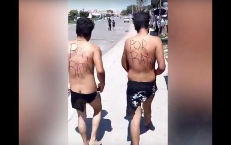 GUADALAJARA, JALISCO (05/JUL/2017).- El acto de desnudar o golpear a personas para amedrentarlos por presumir que participaron en algún delito ahora se repitió en un fraccionamiento, en Tlajomulco de Zúñiga. En esta ocasión fueron dos personas las que fueron vistas desnudas por la calle con la leyenda “Por rata” pintada en su espalda, de acuerdo a información proporcionada por la Policía Municipal.El martes aproximadamente a las cuatro de la tarde una mujer se comunicó vía telefónica con las autoridades municipales para reportar que por las calles del fraccionamiento caminaban dos hombres desnudos, tras lo que se envió a una de las unidades.Los oficiales confirmaron el reporte y se entrevistaron con estas dos personas, las cuales se encontraban completamente desnudas con la leyenda descrita pintada en la espalda.Sin embargo, la Policía confirmó que previo a este incidente no hubo reporte de ningún tipo de robo u algún otro ilícito cometido en la zona.Los policías procedieron entonces a brindarles apoyo a los dos hombres, quienes tampoco mencionaron quiénes habían sido las personas que los desnudaron o las razones por las que lo hicieron. Se negaron también a levantar alguna denuncia por ese hecho.Este miércoles, circuló en redes sociales un video donde se ve a estas personas que caminaban hacia afuera de las calles del fraccionamiento las cuales se cubrían con una playera. Una persona las sigue mientras graba con su celular cuando otro más de motocicleta se les acerca y los obliga a quitarse la prenda mientras los recrimina “por robar”. Los dos hombres lo hacen y continúan su camino desnudos.Presuntamente golpean a otro en El BriseñoEste mismo miércoles circuló otro video donde personas intentan hacer justicia por mano propia, al parecer en la colonia El Briseño, en Zapopan. Al parecer sorprendieron a un hombre arriba de una vivienda cuando lo sometieron, amarraron y comenzaron a golpear.Y el lunes, se divulgó otro video más hecho al parecer por habitantes del autodenominado Rancho Antigobierno, en Tonalá, quienes golpearon y desnudaron a un hombre al que señalaban por robo. Al final fue liberado y escapó a pie por una carretera. Sin embargo, la Fiscalía reveló que esta persona padecía de sus facultades mentales (en el video se aprecia que incluso el hombre habla incoherencias) por lo que investigan a quienes le provocaron las lesiones.De este modo, esta semana suman cuatro las personas que son agredidas y humilladas por habitantes que practican la justicia por mano propia en la Zona Metropolitana, lo que se convierte en un delito toda vez que castigan sin juzgar antes a las personas que señalan de ilícitos.