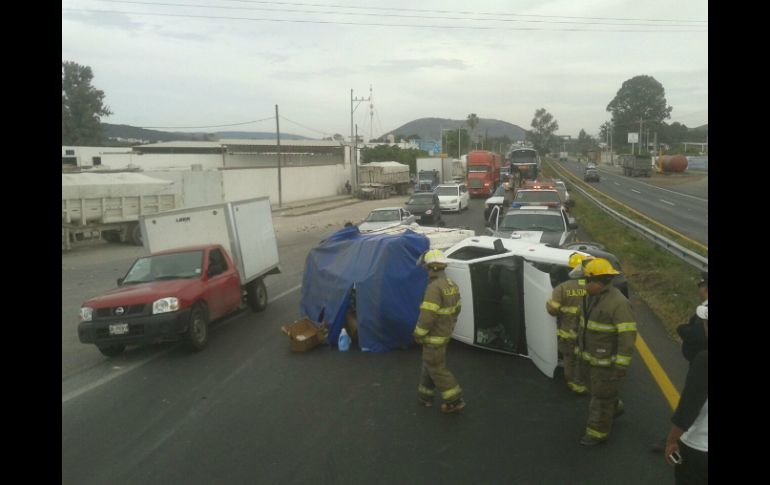 Jalisco | Tráfico considerable presente en el sentido de Guadalajara hacia la capital michoacana Vehículo vuelca y congestiona en carretera a Morelia Tráfico considerable se presenta en el sentido de Guadalajara hacia la capital michoacana en Tlajomulco de Zúñiga Por: EL INFORMADOR 24 de noviembre de 2014 - 13:31 hs El percance ocurre a la altura del poblado de Santa Cruz de las Flores. EL INFORMADOR / GUADALAJARA, JALISCO (24/NOV/2014).- Tráfico considerable se presenta la tarde de este lunes en la carretera a Morelia en el sentido de Guadalajara hacia esa ciudad a consecuencia de un hecho vial en el que una camioneta se volcó. El percance ocurrió poco después de la una de la tarde a unos 200 metros de un centro comercial ubicado a la altura del poblado de Santa Cruz de las Flores, en Tlajomulco de Zúñiga. Fue una camioneta tipo Estaquitas de la marca Nissan la que se volcó sobre su costado derecho. Autoridades municipales informaron que los tripulantes prevenían del mercado de Abastos, en Guadalajara y que se dirigían hacia Tapalpa cuando el vehículo se accidentó quedó de lado en los dos carriles de circulación. Los dos tripulantes quedaron ilesos por el hecho. Tras el hecho los vehículos tuvieron que pasar por un costado para sortear la obstrucción. Las autoridades están a la espera de la llegada de la Policía Federal para que poder retirar el vehículo y descongestionar la vialidad. Temas Seguridad Accidentes Carreteras de Jalisco Recibe las últimas noticias en tu e-mail Todo lo que necesitas saber para comenzar tu día Registrarse implica aceptar los Términos y Condiciones