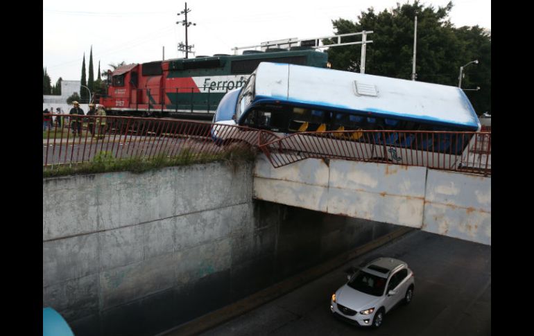 GUADALAJARA, JALISCO (10/SEP/2016).- Era una sola máquina la que viajaba sobre los rieles sin jalar vagón alguno, por lo que no tendría sentido para algún conductor intentar ganarle el paso. La máquina pitaba estridentemente y hasta encendió las luces, por lo que también resulta extraño que alguna persona no se percatara de que se aproximaba. Fue lamentable, raro y a la vez afortunado lo que ocurrió.Aún estaba oscuro cuando Monique Mzirahi viajaba junto con unas 25 personas más en aquel midibús de la ruta 640 con rumbo hacia su trabajo, por la zona de Plaza del Sol, minutos antes de las siete de la mañana. El vehículo tomó su derrotero por López Mateos en el sentido hacia el norte y se dirigió hacia avenida Inglaterra, donde cruzan por las vías del ferrocarril en el desnivel que pasa sobre los carriles centrales de López Mateos."Se escuchó el sonido del tren, prendió las luces el tren pero el camionero no se frenó. Yo estaba parada dos asientos atrás del chofer cuando la gente empezó a gritarle y después nomás sentí el golpe y el camión que se volteaba. Vi para la izquierda y estaba el abismo, dije 'pues nos vamos a matar', estaba de lado el camión ya para caerse casi".La máquina tomó por el costado derecho al midibús y lo llevó hacia el borde del desnivel, donde el camión se estrelló por el otro lado con el barandal de protección. Ladeado el midibús, no fue más allá porque el maquinista logró frenar la locomotora, que de haber ido jalando más vagones seguramente no se hubiera detenido tan rápido."La gente que estaba del lado derecho se cayó, vi a una señora que estaba con sangre en la frente, fue un shock para todos. Yo lo que hice es que vi el abismo, vi la puerta y brinqué a la gente y le empecé a gritar al camionero que abriera la puerta pero el señor estaba en shock también. Abrió la puerta y yo brinqué, no se cuánta altura y ya me salí caminando".Un joven viajante rompió también el cristal del midibús por donde comenzaron a descender más personas, en su desesperación de bajar rápido ante el temor de que el camión se fuera para abajo.No tardó mucho, aseguró Monique, en bajar todas las personas. Entre el tumulto le prestaron un celular con el que llamó a su esposo, que rápido llegó pues viven cerca de ese punto. "Vi que el chofer ya se iba y mi marido lo agarró y llegó la policía y ya se lo llevaron".Ella tuvo golpes y hematomas en piernas, frente y espalda; como el resto de pasajeros, fue revisada y atendida por los paramédicos y los rescatistas que llegaron a los pocos minutos: "El señor bombero, el 'Güiri Güiri' me ayudó, yo le dije, 'señor se parece usted al 'Güiri Güiri', y me dijo 'No señora, soy el 'Güiri Güiri'".Aunque se revisaron 19 personas golpeadas, sólo once tuvieron lesiones de regulares a leves, de las que nueve firmaron para desistirse de atención. "Gracias a Dios todos nos salvamos, estuvimos a un minuto por una indiscreción de un camionero, si hubieran venido más vagones nos vamos al abismo y los coches que están pasando, hubiera sido un accidente muy fuerte". Monique terminó por agradecer también a los bomberos y los paramédicos. Agentes de vialidad aclararon que en el sitio donde quedó el midibús no estuvo en riesgo de caer del desnivel.El conductor y permisionario de la unidad accidentada fue identificado como Agustín Álvarez Murillo, de 43 años, a quien le será cancelada su licencia de conducir, informó la Secretaría de Movilidad.