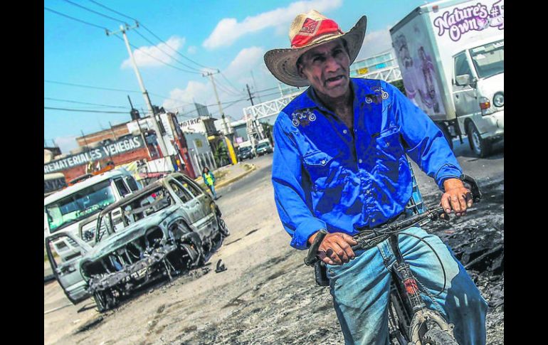 Jalisco | Reacciona delincuencia tras Operativo Jalisco Viven día de asueto entre bloqueos y hechos violentos Los usuarios del transporte público bajados por delincuentes fueron los que más padecieron los bloqueos de calles e incendios de vehículos Por: EL INFORMADOR 2 de mayo de 2015 - 03:37 hs GUADALAJARA, JALISCO (02/MAY/2015).- Faltaban 15 minutos para las 10 de la mañana. De repente, las filas de autos comenzaron a hacerse largas. “Pensamos que iba a ser un accidente de tráfico, ahí en la bajadita en la curva”. El que habla es un empleado de una gasolinera en la zona de El Tapatío. Allí, se confirmaría horas más tarde, fue uno de los 39 puntos bloqueados (con vehículos incendiados) ayer por la delincuencia organizada tras el Operativo Jalisco. El saldo de la jornada violenta de ayer en Jalisco fue de siete muertos y 19 heridos. En total, 25 municipios fueron afectados. Algunos vecinos atestiguaron que una unidad del transporte público hizo la parada en la zona de La Piedrera, luego de que unos individuos le marcaron el alto y le mostraron las armas. Dos hombres pidieron al pasaje que se bajara y, después de eso, le encendieron fuego. En Tlaquepaque, los puntos confirmados por bloqueos se presentaron en las siguientes confluencias vehiculares: 8 de Julio y Periférico, Tesoro y Colón, Carretera Libre a Zapotlanejo y Javier Mina, Carretera a Chapala, a la altura de la Piedrera y Glendale y Lázaro Cárdenas. En otro hecho, el midibús S-1643 de la Ruta 644-B circulaba sobre Avenida Revolución a la altura de la calle Matamoros a las 10:00 horas. José Pablo López, el chofer de la unidad, detuvo el vehículo: “Un pasajero me hizo la parada, se sube y se va para atrás con una bolsa de ropa que saca y deja en el piso. Después se viene para adelante… yo pensé que me iba a pagar”. No fue así. El sujeto sacó un bote de gasolina y comenzó a rociar el midibús sin decir palabra alguna ante la mirada incrédula de 11 pasajeros, tres de ellos menores de edad. Al estar junto al chofer encendió el combustible, lo que provocó que todos bajaran de la unidad, que rápido se incendió. El mismo criminal que se mojó los pies con gasolina bajó del camión con lumbre, por lo que se comenzó a manotear para apagarse, asegura José Pablo: “Lo quisimos seguir, pero vimos que traía una arma larga. Se fue corriendo por Matamoros”. Una pareja comenzó a pedir ayuda, pues su hijo de cuatro años se había quedado arriba del camión, por lo que José Pablo se subió y lo bajó en brazos. En seguida corrió a la tienda de la esquina donde le prestaron un extintor, con lo que logró apagar el camión: “Nadie quedó lesionado, sólo yo un poco flameado”, y mostró sus brazos tiznados, “cejas, pestañas, copete…”. El camión quedó chamuscado sólo por el interior, por lo que no se afectó su funcionamiento. “Te quedas o le corres” Anselmo Manzano se detuvo en la glorieta de la calle Delicias, en Tlaquepaque, cuando un sujeto se le aproximó y se subió a los estribos de su tráiler; tocó amablemente a su ventana la cual estaba a la mitad. Sin embargo, la sonrisa del maleante pasó a un rostro agresivo cuando sacó una pistola para amagarlo y que lo dejara abordar a él y a su cómplice. “Me dijeron que lo llevara hasta Lázaro Cárdenas y que lo atravesara (el tráiler)”. Hizo lo que le pidieron y condujo hacia la citada calzada donde dejó el tráiler a media calle sobre las laterales: “Sacaron un bidón de gasolina y comenzaron a rociar mi ropa, el colchón y me dijeron: ‘Te quedas en el camión o le corres’”. El chofer bajó y le prendieron fuego.Le quitaron el teléfono y arrojaron la pila al suelo para después huir. Anselmo se dio a la tarea de buscar la pila para ponérsela a su teléfono y pedir ayuda. Pero el combustible rápido provocó que su vehículo se consumiera. Por fortuna salió ileso. Uno de los 39 bloqueos. Vallarta, entre los más afectados Enfrentamientos y sucursales bancarias, gasolineras y vehículos incendiados son algunos de los hechos violentos que se registraron en al menos 18 municipios del interior del Estado. En Puerto Vallarta, cinco gasolineras y dos bancos fueron quemados, hubo dos connatos de incendio en tiendas departamentales. El turismo fue enclaustrado en los hoteles y el área de urgencias de la Clínica 42 del IMSS lució repleta por personas presas de ataques de pánico. Entre tanto, policías de Zapotlán El Grande informaron que fueron incendiados dos bancos y una distribuidora de vehículos, así como un tráiler en la autopista Guadalajara-Colima. En Ixtlahuacán del Río, un grupo armado quemó un tráiler cerca de la frontera con Zacatecas y una camioneta de Protección Civil. Dos automóviles particulares fueron incendiados afuera de dos bancos cerca de la Presidencia Municipal de Tuxpan. En Tonaya quemaron una patrulla y un camión de pasajeros. Por otra parte, policías de Jalostotitlán se enfrentaron a balazos contra sujetos armados sin lesionados ni detenidos. En 2011, la primeraSuman cinco jornadas violentas Histórico Detenciones de capos y operativos de seguridad han desatado por lo menos cinco jornadas de bloqueos violentos en Jalisco en los últimos cuatro años. Grave Antes de los hechos de ayer, la jornada más peligrosa se había registrado en agosto de 2012, cuando sucedieron 28 bloqueos en el Estado. Líder La extradición del narcotraficante Óscar “Lobo” Valencia, vinculado con el cártel de Sinaloa y La Resistencia fue el detonante de dos bloqueos en los primeros meses de 2011. Inicio El domingo 16 de enero de 2011 ocurrió la primera serie de bloqueos en la historia de Jalisco. Tras una balacera en la Carretera a Chapala, miembros de la delincuencia organizada obstruyeron la vía con un camión repartidor de una empresa refresquera y otros cuatro vehículos. Poco después, dos agentes de la Policía Vial fueron agredidos a balazos en Periférico Sur. También se encontró una