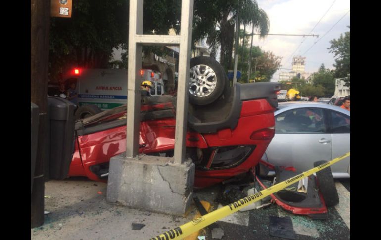 GUADALAJARA, JALISCO (30/MAY/2017).- Esta tarde la volcadura de un vehículo en la Avenida Vallarta dejó como saldo una mujer lesionada, reportaron los Bomberos de Guadalajara.Los hechos sucedieron poco antes de las 19:00 horas en el cruce de la citada avenida con la calle Simón Bolívar en la colonia Lafayette.A la llegada de las unidades encontraron un automóvil rojo marca Fiat volcado y estampado contra un poste que anuncia una terminal de Siteur.La conductora, una mujer de 34 años, resultó lesionada en estado leve y fue trasladada a la Cruz Roja Morelos. Mientras que los pasajeros del otro vehículo involucrado en el percance no requirieron asistencia médica.Serán las autoridades las que determinen las causas del accidente.