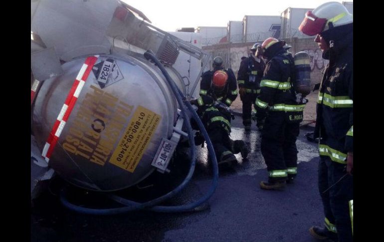 GUADALAJARA, JALISCO (02/MAR/2017).- La mañana de este jueves se registró la volcadura de una pipa cargada con sosa cáustica en el municipio de Tlaquepaque, informó la Unidad Estatal de Protección Civil y Bomberos de Jalisco (UEPCBJ).Los hechos ocurrieron en el cruce de Periférico Sur y Prolongación Gobernador Curiel, en San Pedro Tlaquepaque.En el lugar, la pipa de la empresa Transportes Copado, que que transportaba cerca de nueve mil litros de sosa cáustica, terminó volcada sobre su costado derecho.Debido al incidente se registró un derrame de cerca de 700 litros de la sustancia por la escotilla de la unidad, refirió la UEPCBJ, por lo que elementos de la corporación, en coordinación con bomberos de Tlaquepaque, acudieron a realizar el saneamiento de la zona y así evitar incidentes mayores.A pesar de lo aparatoso del incidente, la corporación refirió que no se reportaron personas lesionadas.