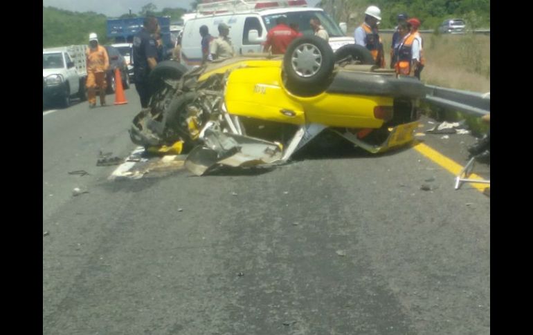 Jalisco | Rescatistas acudieron al kilómetro 499 de dicha vía donde se reportó el percance Vuelca taxi en carretera a Ocotlán; muere pasajero Rescatistas acudieron al kilómetro 499 de dicha vía donde se reportó el percance Por: EL INFORMADOR 7 de agosto de 2015 - 18:34 hs Al sitio acudió personal de Ciencias Forenses para establecer las causas del hecho vial. ESPECIAL / GUADALAJARA, JALISCO (07/AGO/2015).- El tripulante de un vehículo de alquiler falleció este viernes al volcar sobre la carretera Guadalajara-Ocotlán, informó la Unidad Estatal de Protección Civil. Unidades de rescatistas acudieron al kilómetro 449 de dicha vía donde se reportó el percance. En el sitio encontraron un taxi Nissan Tsuru, número económico TX-124, del municipio de Zapotlanejo, el cual se encontraba volcado y destrozado. Dentro se hallaba ya sin vida el pasajero, quien fue identificado de manera extraoficial como Octavio Valle Valadez, de quien no se especificó la edad. El conductor del taxi, proveniente de La Laja, quedó lesionado. No se informó de su identidad. De acuerdo a información preliminar, la persona, oriunda de Ocotlán, era la propietaria de un casino llamado Miravalle. Al sitio acudió personal de Ciencias Forenses para establecer las causas del hecho vial. Temas Seguridad Accidentes con muertes en Jalisco Protección Civil Jalisco Lee También Morena Jalisco respalda Reforma Judicial Comienza en Jalisco la Campaña Nacional de Vacunación de invierno Charros de Jalisco buscará frenar su racha negativa en juegos inaugurales de la LMP Autos con estas placas deben realizar la Verificación Vehicular antes del 31 de octubre Recibe las últimas noticias en tu e-mail Todo lo que necesitas saber para comenzar tu día Registrarse implica aceptar los Términos y Condiciones