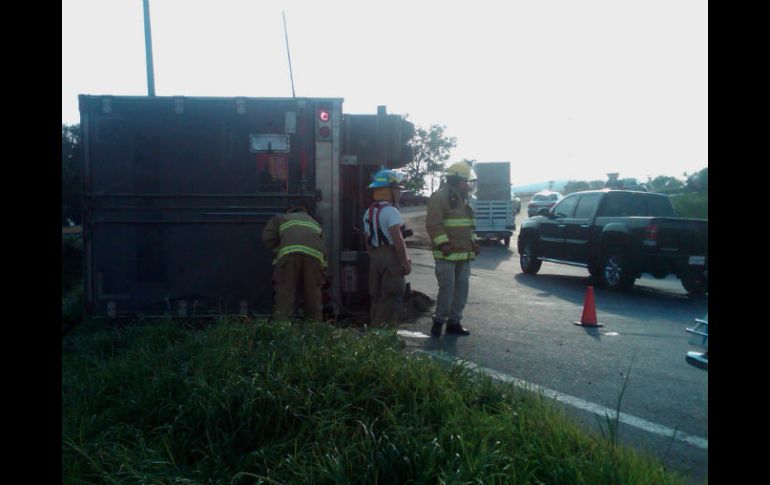 Jalisco | Ocurrió esta tarde en el nodo del Anillo Periférico y la Avenida Vallarta Vuelca tráiler cargado con cloro Ocurrió esta tarde en el nodo del Anillo Periférico y la Avenida Vallarta Por: EL INFORMADOR 6 de agosto de 2012 - 20:34 hs El tráiler iba cargado con aproximadamente 40 toneladas de la mercancía. / ZAPOPAN, JALISCO (06/AGO/2012).- Un tráiler cargado con cloro y artículos varios para limpieza, volcó la tarde de este lunes en Zapopan. El percance ocurrió en el nodo del Anillo Periférico y la Avenida Vallarta, en Zapopan, en dirección a la Avenida Aviación. El tráiler iba cargado con aproximadamente 40 toneladas de la mercancía, misma tenía como destino una tienda de autoservicio, al lugar acudieron elementos de Protección Civil Jalisco. Aunque afortunadamente no hubo personas lesionadas, si hubo una ligera carga vehícular en la zona. Temas Seguridad Accidentes Protección Civil Jalisco Recibe las últimas noticias en tu e-mail Todo lo que necesitas saber para comenzar tu día Registrarse implica aceptar los Términos y Condiciones