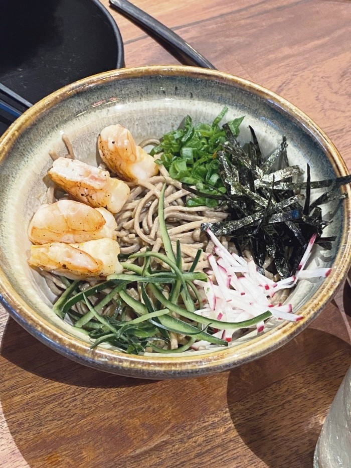Tenía ganas de ir a Robata y por una u otra razón no había podido. Es esta nueva propuesta de Grupo MyT; sí, aquel que conocimos con su restaurante Moshi Moshi en Andares y que próximamente nos deleitará con La Imperial en Midtown, de la que comentaremos una vez que esté en funcionamiento.Pues bien, en Robata, que significa horno de carbón, y es precisamente la propuesta que ofrecen en la carta, hay brochetas al carbón como la especialidad de la casa.El lugar atrapa, al entrar tiene un par de mesas redondas grandes que destacan y otras de cuatro y para dos personas que llenan en lugar, y en donde la cocina abierta te mete en cada platillo que de ahí sale, al fondo una gran cantina llena de botellas con todo tipo de bebidas, resaltando las japonesas. La decoración es industrial light, que en combinación con el mobiliario hace muy cálida la estancia con una música electro chill que se antoja para pasar la tarde con los amigos.Nuestro mesero, Daniel, nos sugirió de entrada un sashimi de shiromi $145, que significa de carne blanca, que ojalá hubiera estado bueno el maldito, estuvo excelso. De delicado sabor alimonado, en una salsa de ponzu, que es elaborada con vino de arroz llamado mirin, cítricos, soya y vinagre acompañado de arare que es arroz inflado pero en una presentación de pequeñas perlas y brotes de shiso.Ordenamos dos platillos más: Robatayaki bowl, $245, que es un platillo que viene con arroz de base y tres brochetas a escoger, elegimos: brocheta de coliflor spicy Robata, que sirven en el punto justo donde la coliflor está cocida sin haber perdido el crujiente que la caracteriza y con un lejano picor que casi no se nota, pero disfrutas desde el inicio. Camarones okura yuzu kosho & sriracha que venían acompañados con okra, que es este fruto africano que nunca había probado y que me sorprendió verlo y saborearlo, sabe a calabacita sin lo acuoso, ¡buena de verdad!La última brocheta fue de filete choice yuzu kosho que venían en dos varitas. Todo acompañado por una cama de arroz integral que venía en su punto. Es este arroz que no siempre queda bien ya que su cocción lleva más tiempo y no en todos los restaurantes les queda en su punto, aquí sí les quedó.El segundo platillo fue shrimp & soba bowl, que es un platillo fresco, la pasta viene mezclada con tahini, que es esta pasta de ajonjolí, que le da una explosión de sabor. Lo acompañan con cebollín, alga nori, pepino y rábano, a pesar del buen sabor creo que demerita un poco que vengan cuatro camarones; sí, de buen tamaño pero cuatro se ve un poco pobre el plato, y repito estaba bueno, pero quizá un esfuerzo y un par más hubiera estado de lujo.Algo que noté es que, a pesar de tener charolas de servicio, los meseros no las usan y siento que es mucho más profesional llegar con el platillo en la mano que andar buscando donde poner el tripie para poner una charola que lleva un solo plato.¡Hasta aquí mi reporte, Joaquín!¡Sé feliz!