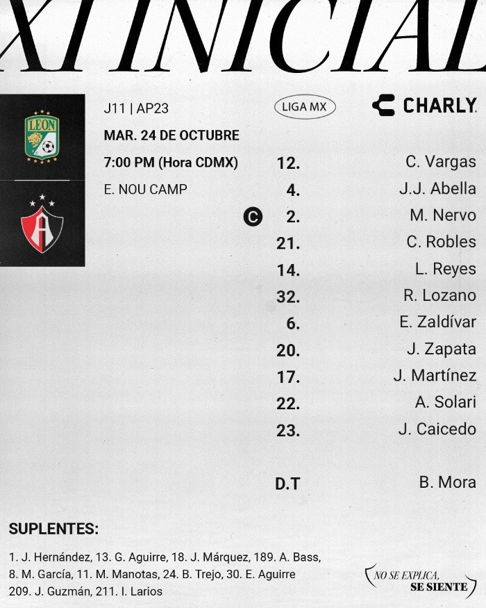 Atlas visita el Estadio Nou Camp para enfrentar a León en un duelo pendiente de la Jornada 11 los rojinegros buscarán cambiar su situación tras una racha de tres derrotas